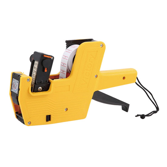 This is a price labeling tool with a practical design. It features a sophisticated and strong structure with ergonomic handles. This tool comes with a strip on the end for easy attachment.