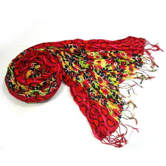 This featured scarf is made with pure cotton for a soft and comfy touch on your skin. The scarf is colored in bright colors and fancy, fashionable patterns. The upbeat scarf makes an eye-catching addition to your daily looks.