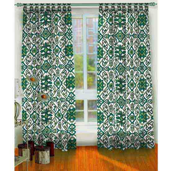 Outlined is a charming curtain printed with antique patterns in colors of green and white for a refreshing look. It demonstrates an allover cotton finish to deliver a soft hand touch. The curtain can come with a tab top or rod pocket design for better hanging capability. Spice up your living room simply with this printed curtain.