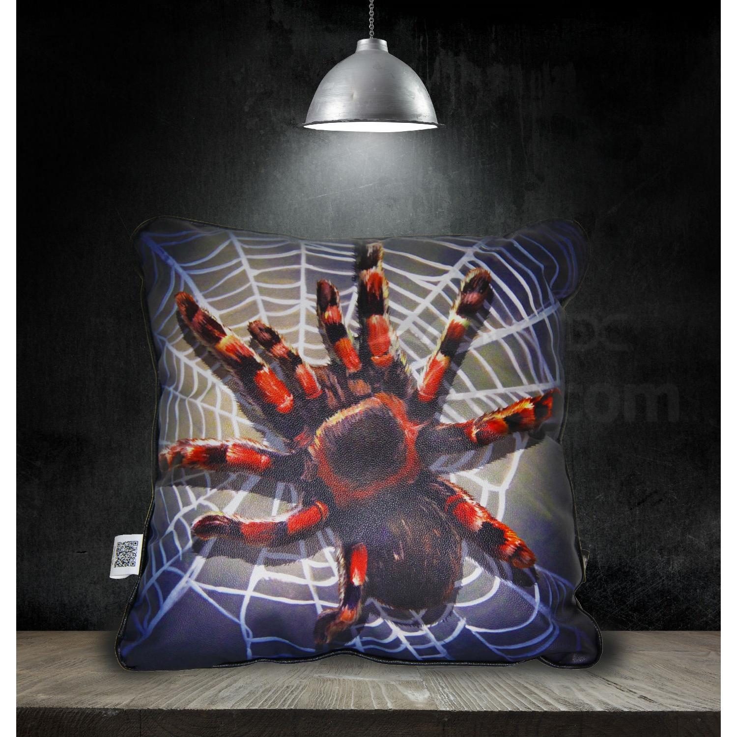 Showcase your personality with this attractive cushion. The cushion is covered with a huge spider and white webs on one side while the back is finished in black for a stylish statement. Filled with soft polyester, this cushion is made with comfort and uniqueness in mind. Make a stylish statement with this cushion to liven up your rooms.