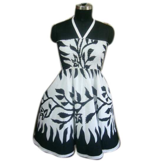 This dress boasts floral patterns in a classic black-and-white match. The bodice comes with a fitted cut with a halter neck. Put on this beautiful dress and stand out at parties.