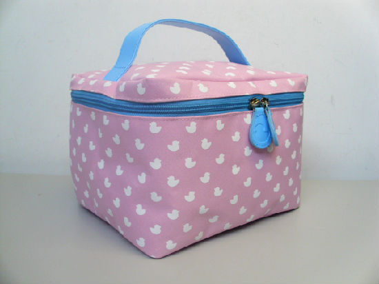 Printed duck pattern 600 x 300D polyester with PVC handle cosmetic case.