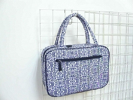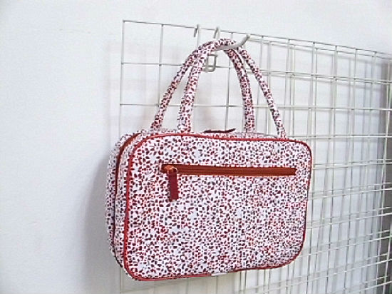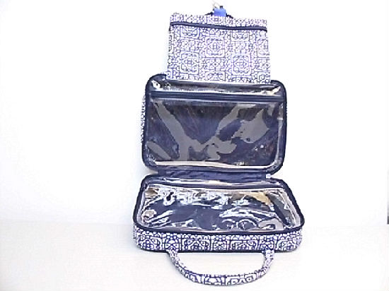 Printed floral canvas with PVC handle cosmetic bag.