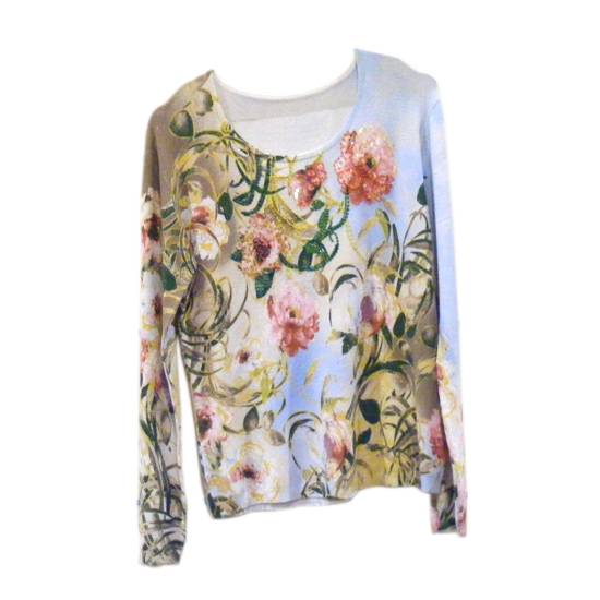 This knitted ladies' top has long sleeves yet it is thin, it is suitable for all seasons.