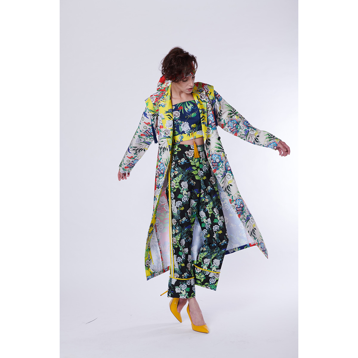 This collection is inspired by “Tibetan culture” which has a unique cultural element that makes this design one-of-a-kind. The Tibetan mask and Thangka pattern are redrawn by hands with engraving drawing techniques to create our fabric printing. Also, in the clothing design, it uses the silhouette of Tibetan traditional costumes to turn it into a contemporary design combined with the characteristic of SAAMU."