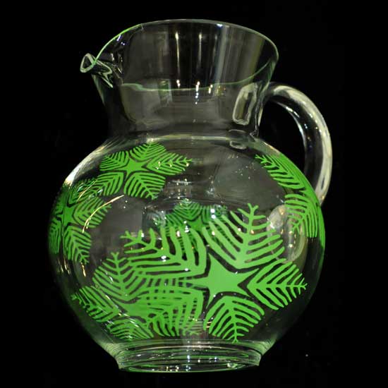 This printed pitcher flaunts a natural style with its attractive printed leaves. This glass pitcher is designed with a large capacity. Use this excellent pitcher to store your beverage in style.