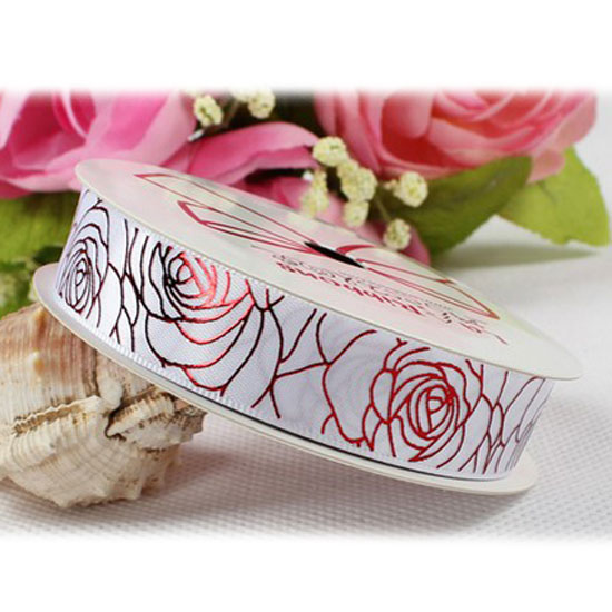 This is a reel of ribbon with a fashionable design. It is printed with vivid and sophisticated rose patterns for added uniqueness. Add a touch of elegance to your gift with this dainty ribbon.