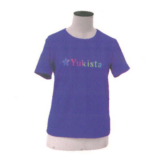 This is a T-shirt made of breathable and waterproof fabric. It comes in blue with colorful prints on the front. The soft texture gives you a comfortable wearing experience.