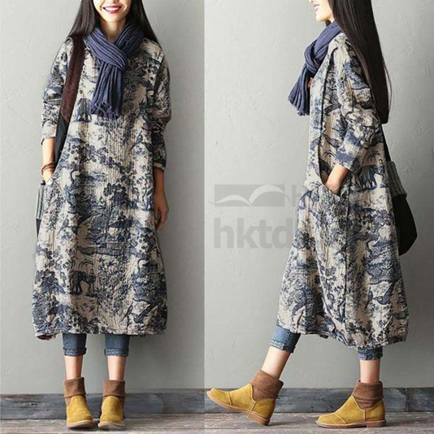 This is a cotton and linen material, loose dress, suitable for spring or autumn,