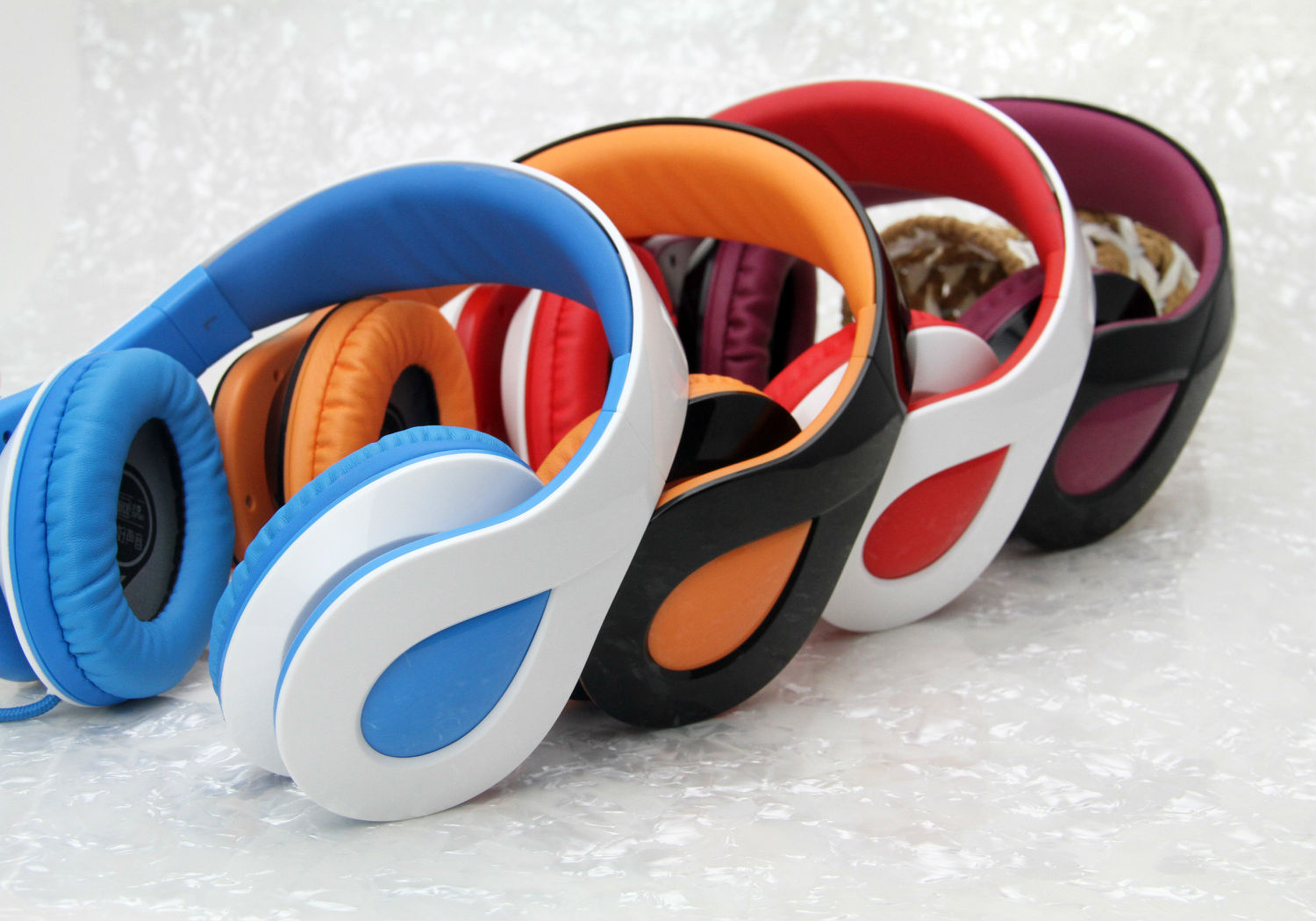 this private designed headphone feature white blue,white red,black yellow and black purple colors,with leather earmuff, makesyou enjoy beautiful music.