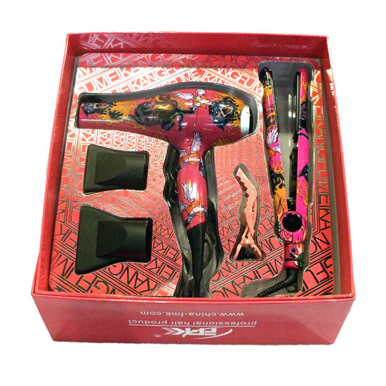 Featured here is a set of professional hair dryer and straightener with stylish motifs on the exterior. The high-performance hair dryer and straightener can satisfy all your styling needs. The set is finely packaged in an exquisite gift box.