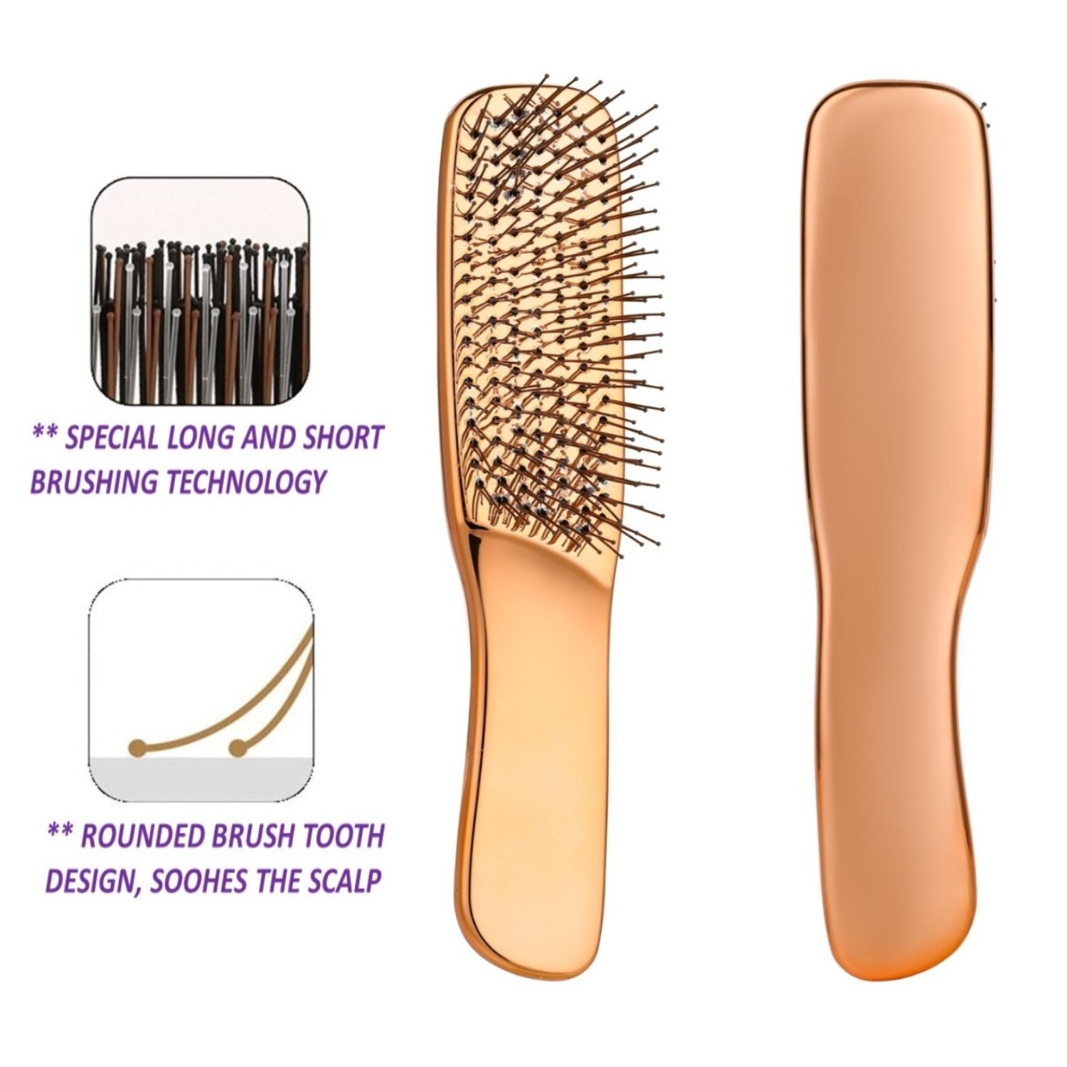 Unique 3 types of soft bristles: Soft and dense bristles to no-pain remove knots and entanglement. Long and short two stage flocking and three types of pins with different hardness. Deeply clean the scalp and hair follicles, and remove sebum and dirt without harming the scalp. Wet and Dry for all hair types.