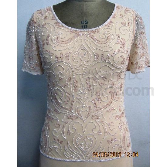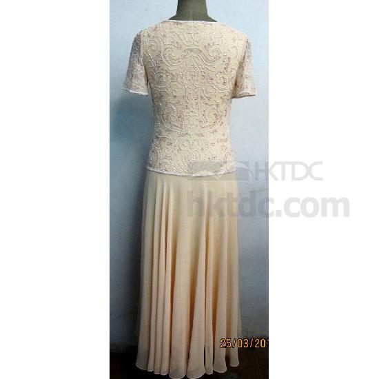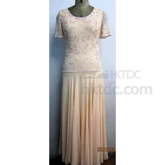 Peach, Ivory prom dress with full circle skirt attached with top bottom, the product in bias grain with nice fitting in body.