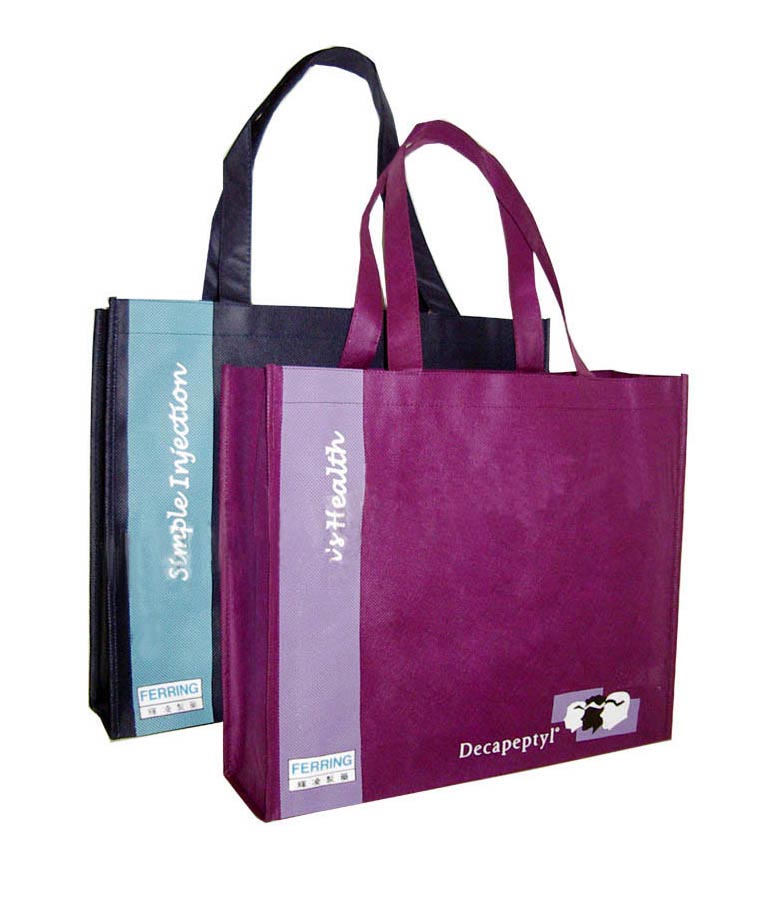 Description: long handles for carrying on hand or on shoulder; different size, color, printing available.