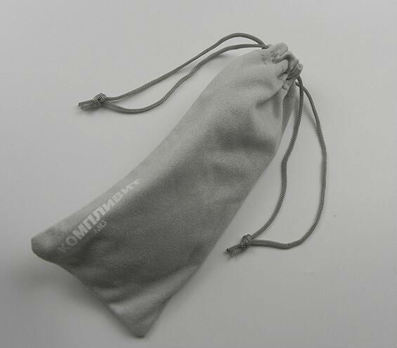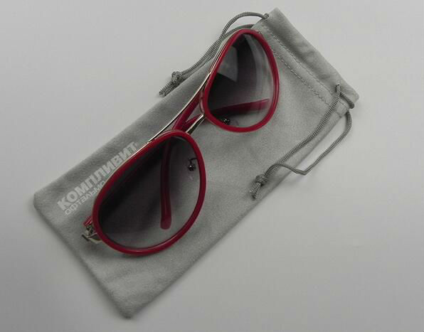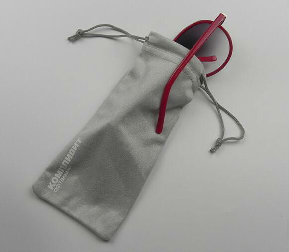 promotional eyeglasses pouch displayed is made of microfiber with silk printing logo