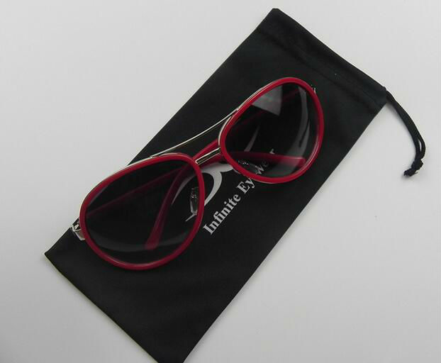 Promotional eyewear package displayed is made of microfiber with silk printing logo