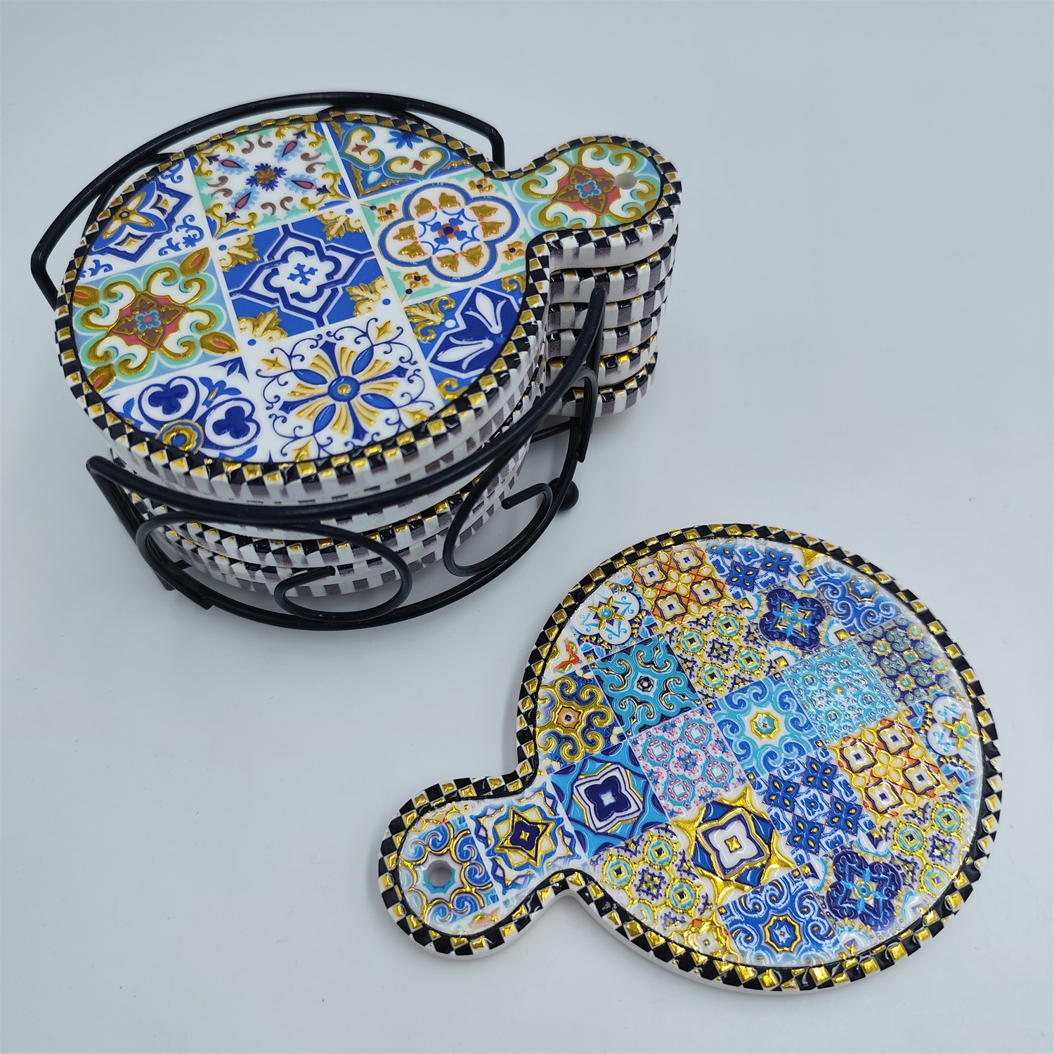 Product Name: Handcrafted Moroccan Style Ceramic Coasters with Iron Holder Set