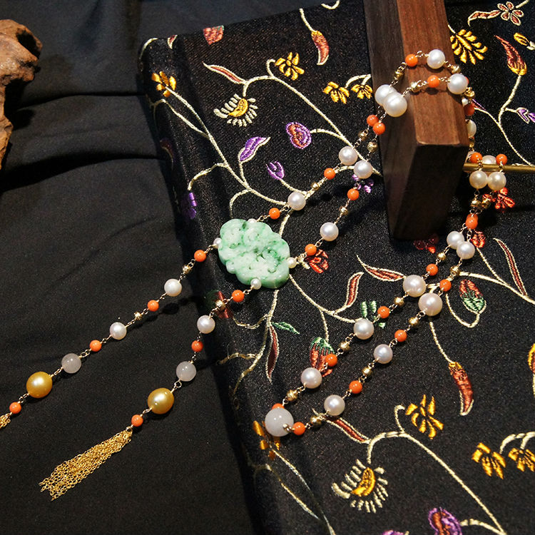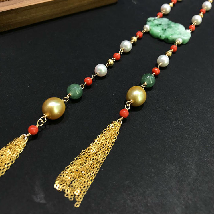 Sea water pearl 2P, jade 1+3P, total length is 45CM.