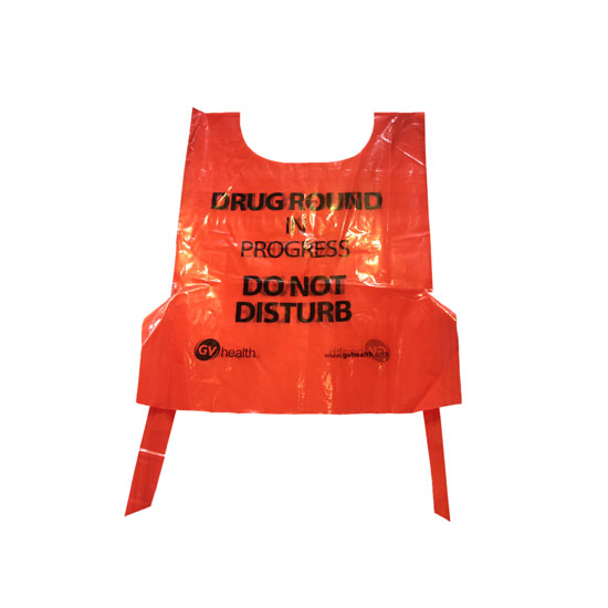 This is a protective apron in bright orange. It is made of quality material for high robustness. This apron can well protect your body from chemicals.