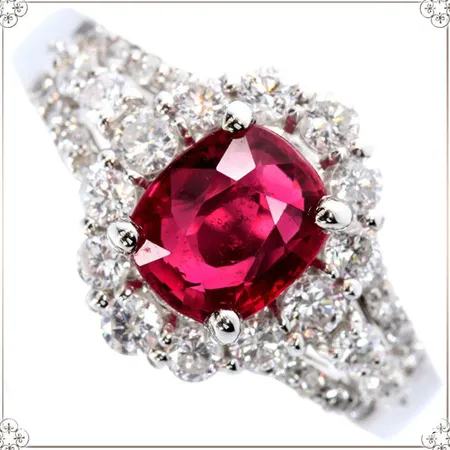 Very clean and bright, nice quality no heated ruby with japan made ring.