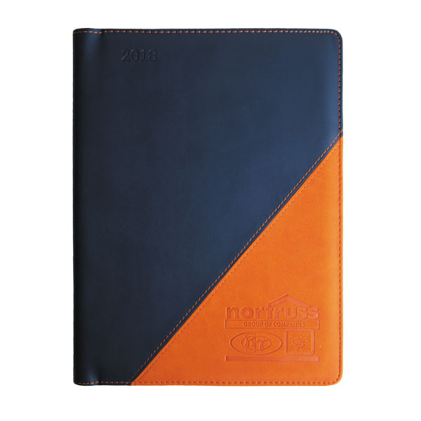 We can tailor and design your stationery to meet your budget and quality needs. A5 Two tone pu cover with lined notes pages and customer advertising artwork