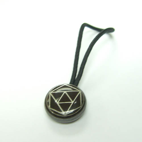 This is a metal / plastic zip puller that can be used in clothing and bags.