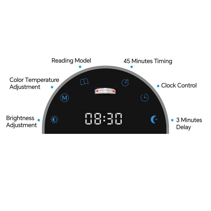 Function optional: Brightness adjustment, color temperature adjustment, reading model, 45 mins timing, clock control, 3 mins delay;