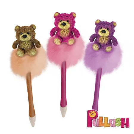 Pullush Bear Feather Pen is a new collection of Foluck. There are various series of cute animals available, such as bear, poodle, bulldog, hamster etc in squishy toys, keychain and pens. They all look like plush toys!