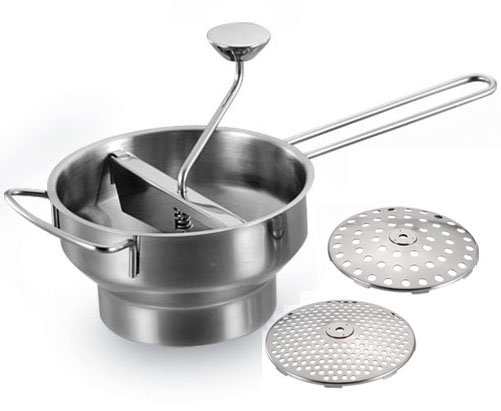Get ready to prepare all your favorite fruit dishes with this punch hole fruit masher. It features two mesh strainers with different hole sizes for various kinds of fruits. It is also installed with two safty handles, one is long and thin and the other one is wide for convenience.