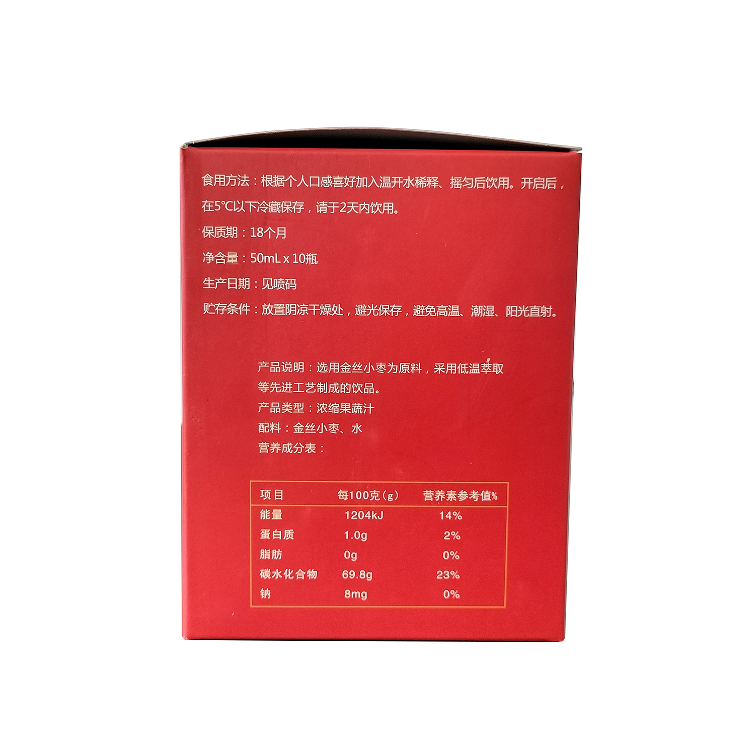 A delicious and nutritious beverage made from carefully selected red dates to deliver a mildly sweet, slightly tangy flavor and a unique aroma. Packed with essential nutrients, vitamins, and minerals, which may help boost the immune system, support heart and digestive health, and reduce inflammation, the beverage is perfect for those seeking a wholesome indulgence that also supports overall well-being.