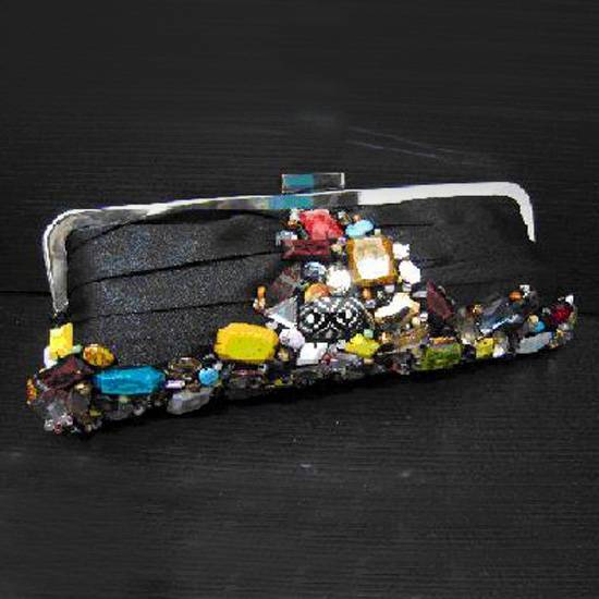 This is a purse with rectangular shape. It is decorated with faux jewels. It is a fashionable design purse with a sense of elegance.