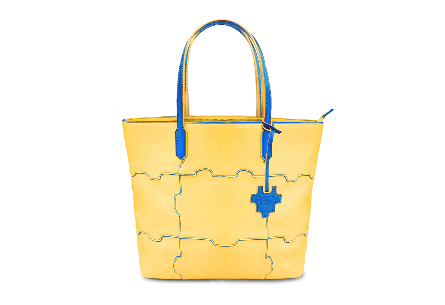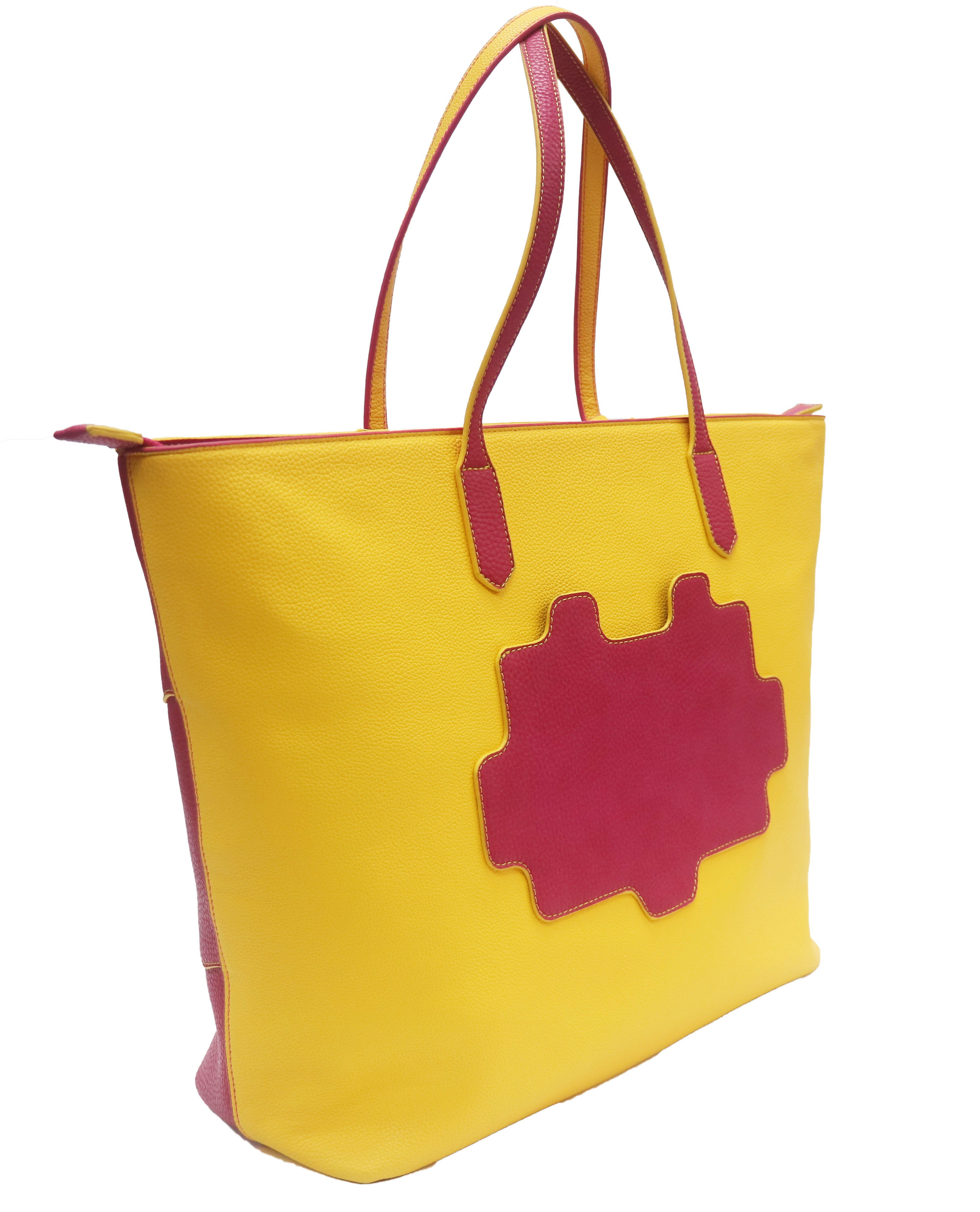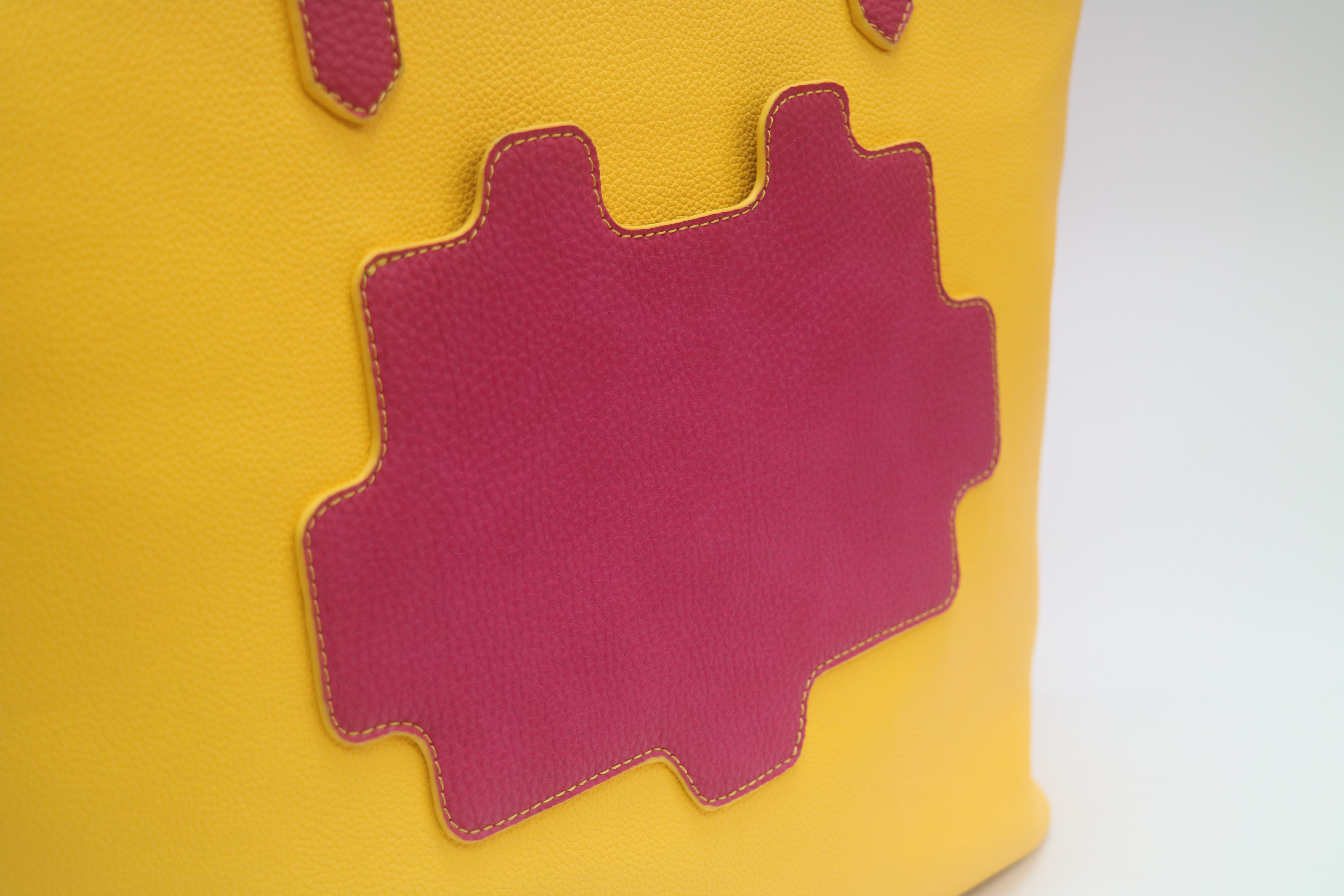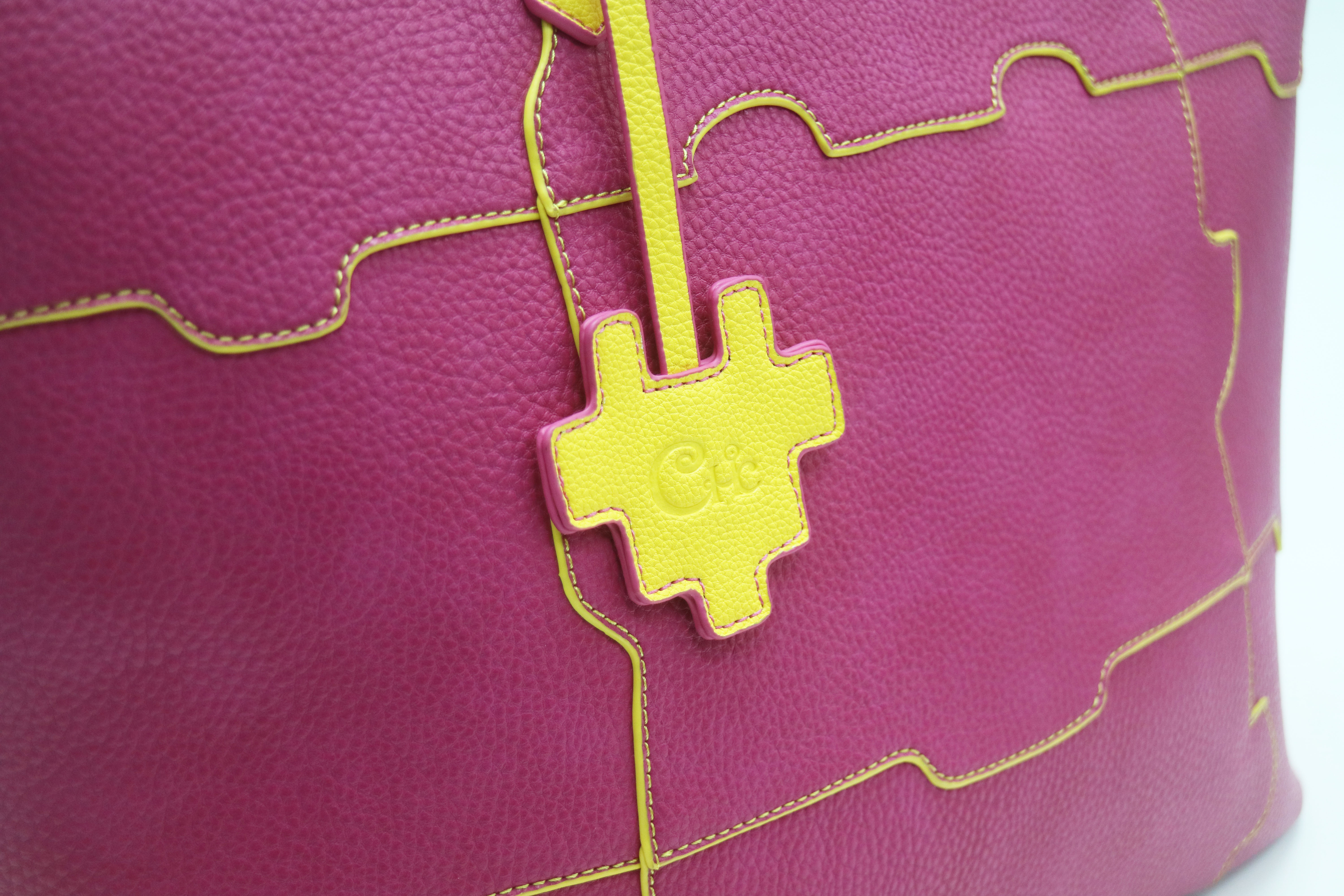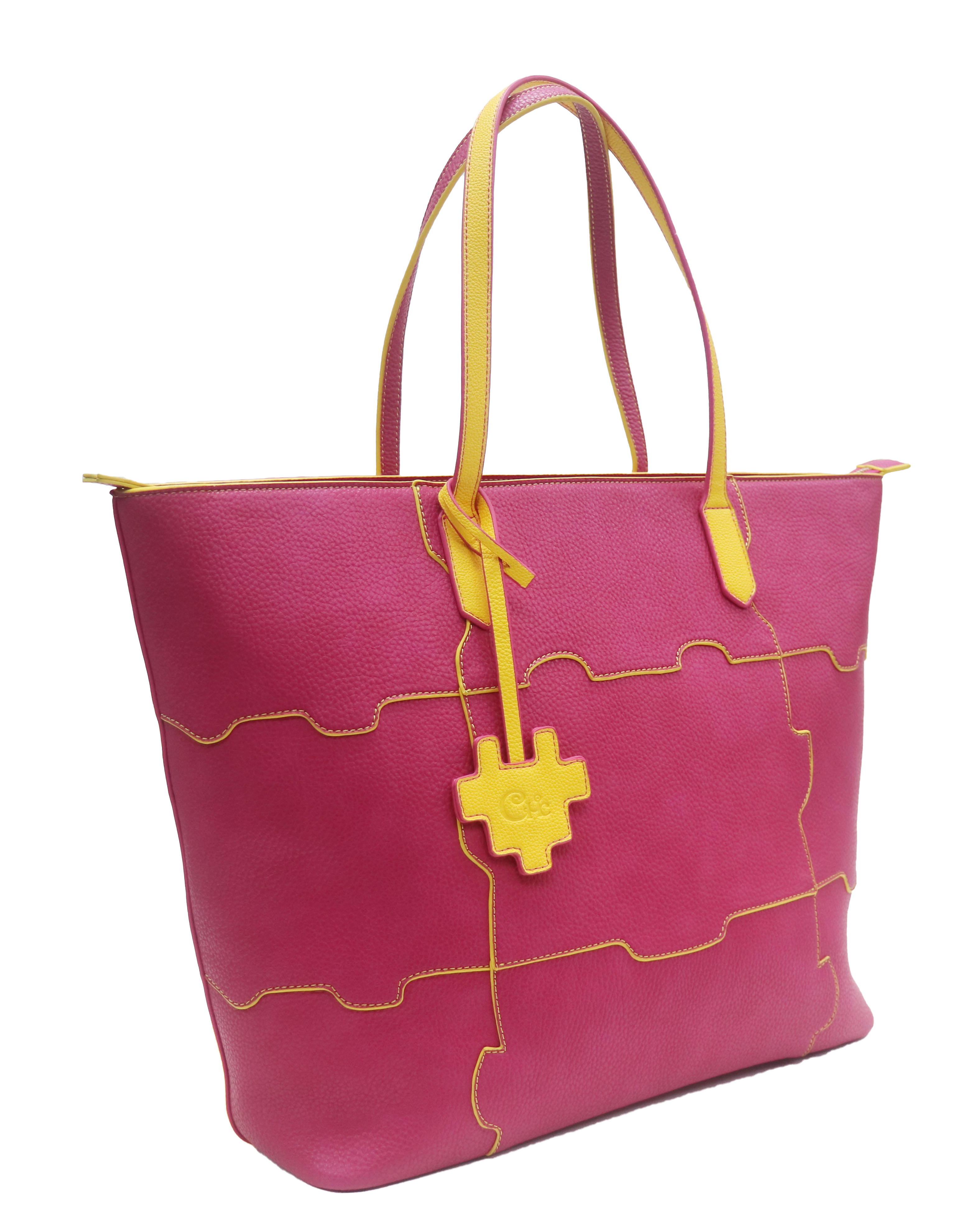 Puzzle Pattern Outer Tote Bag With Puzzle Shape Charm