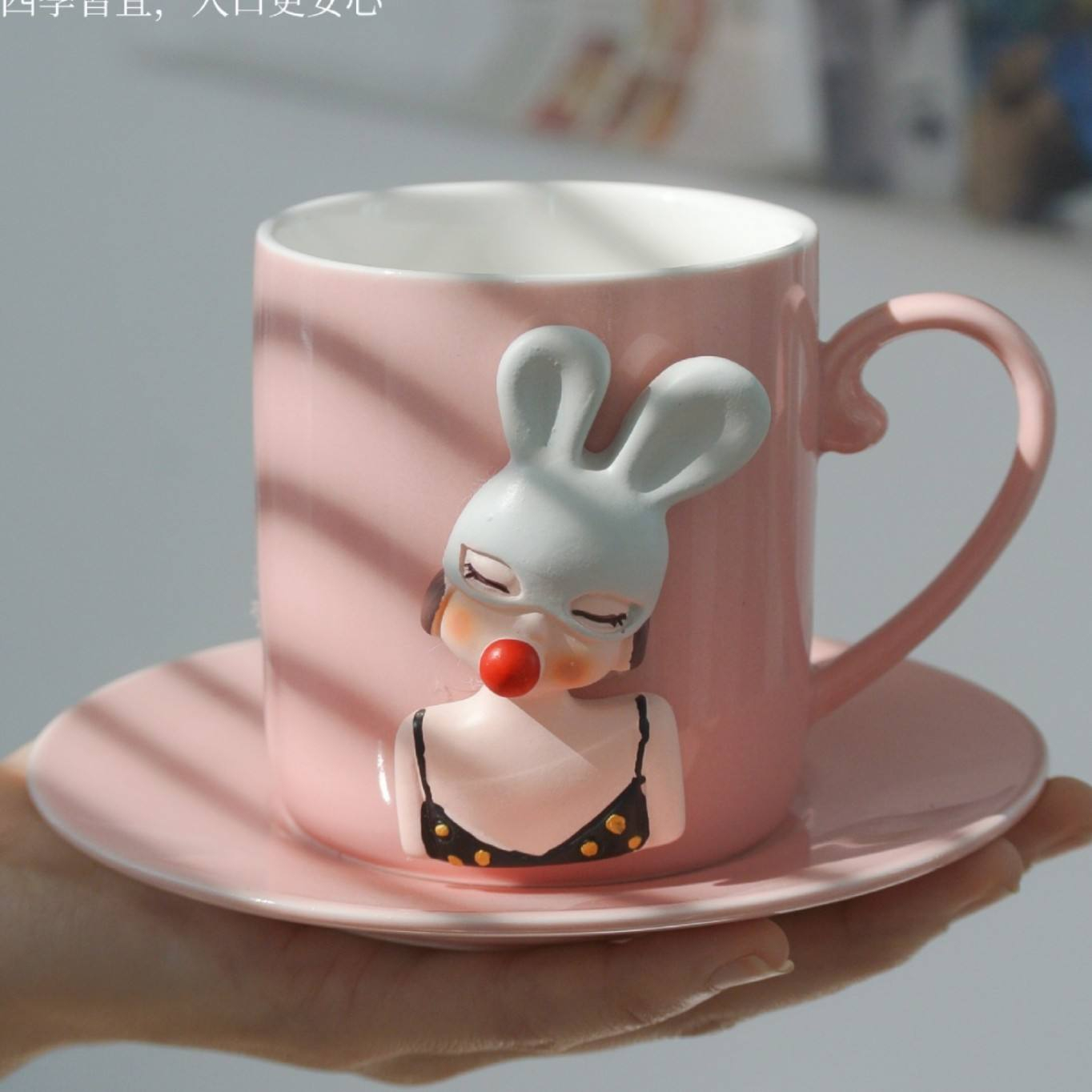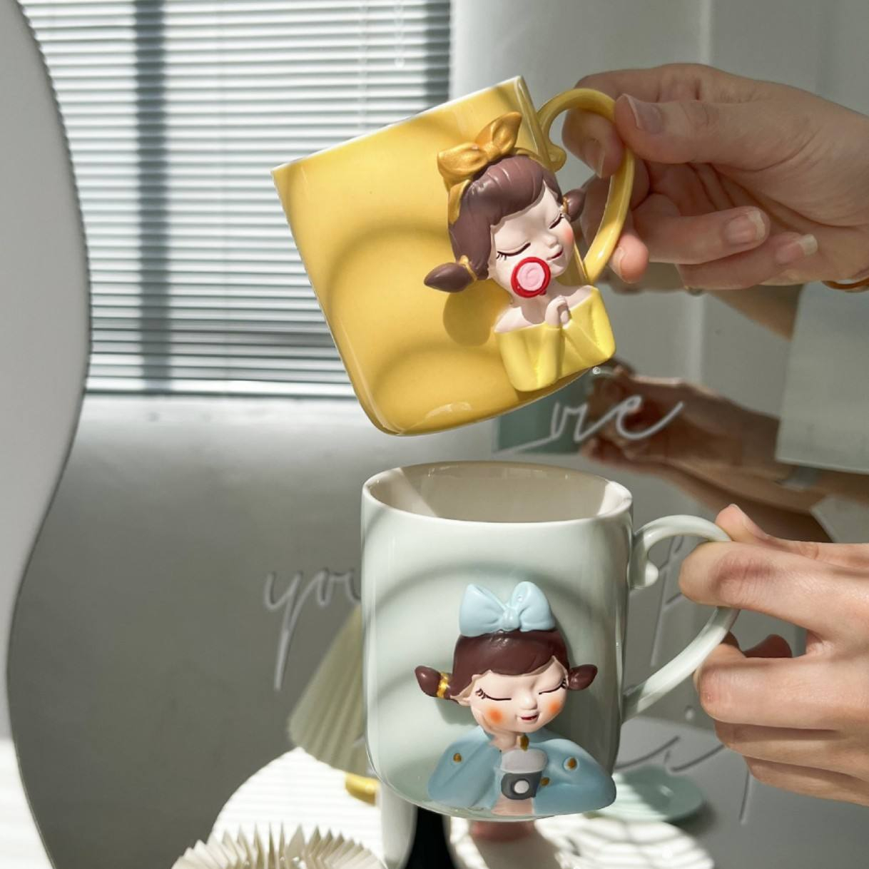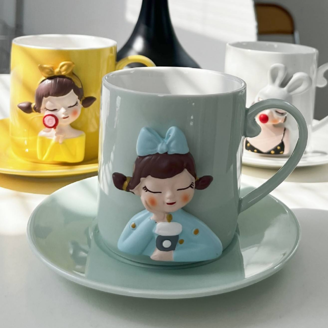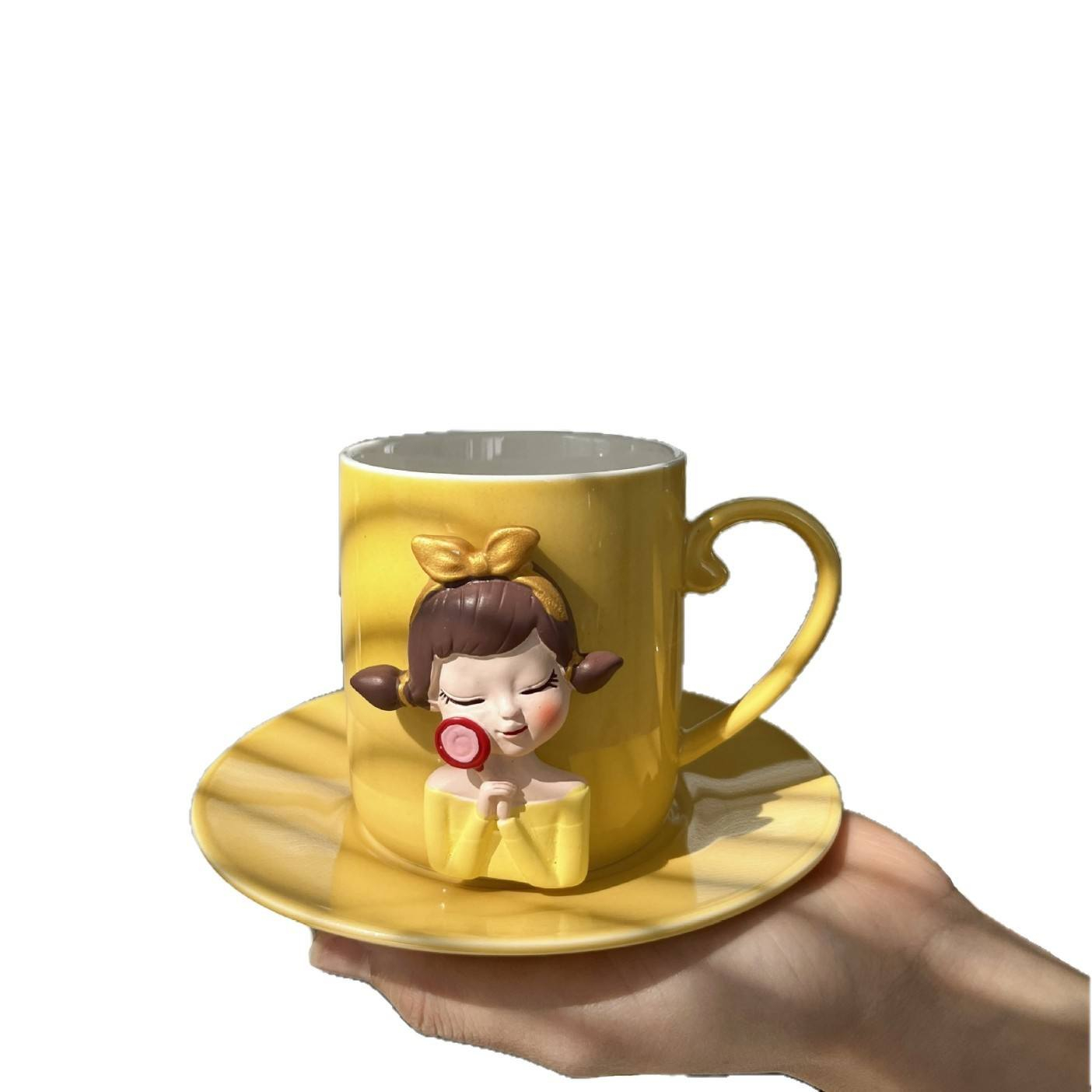 Q Version Cartoon Princess Ceramic Cup Saucer Set Multicolor 230ml Capacity Dishwasher & Microwave Safe Gift Box Packaging