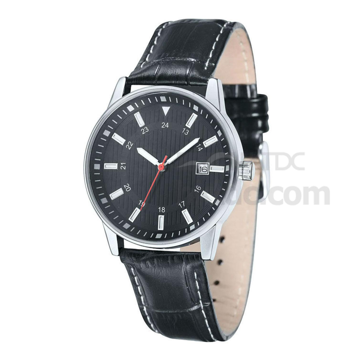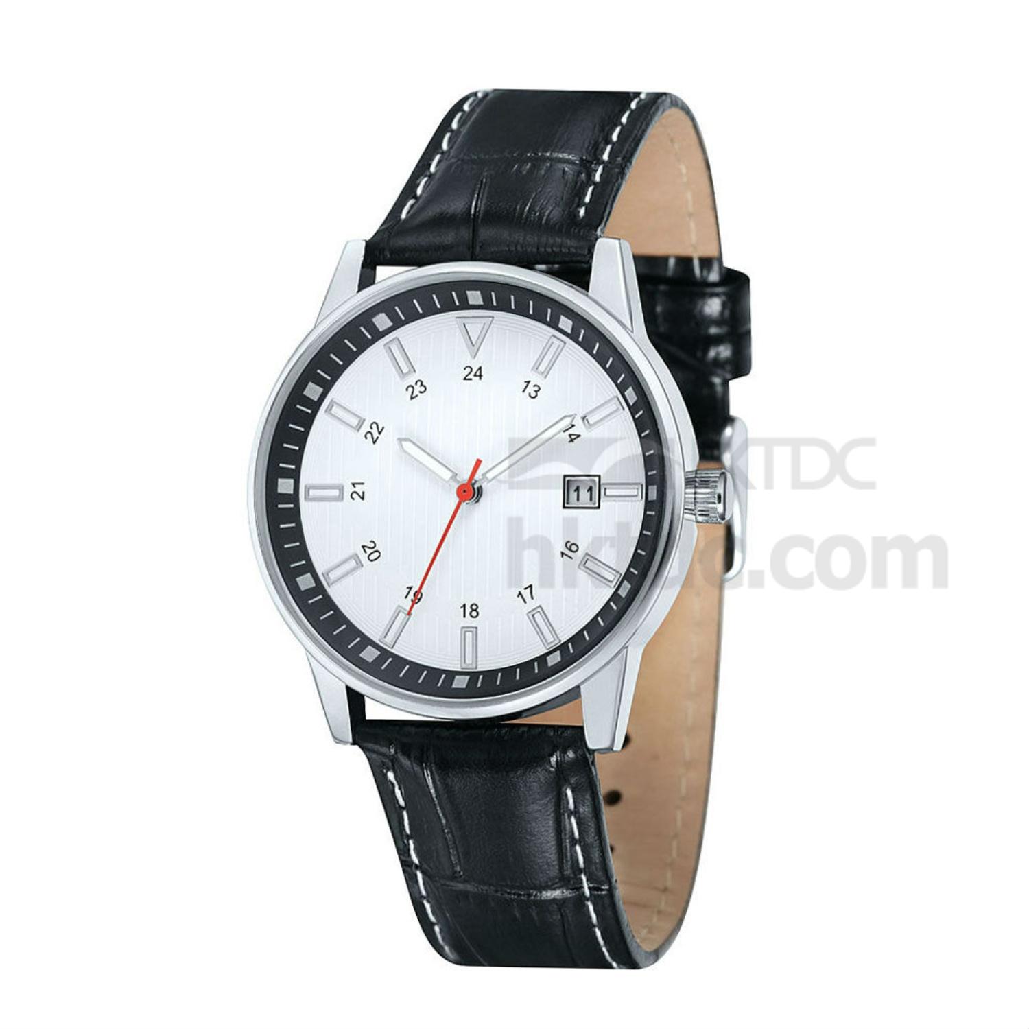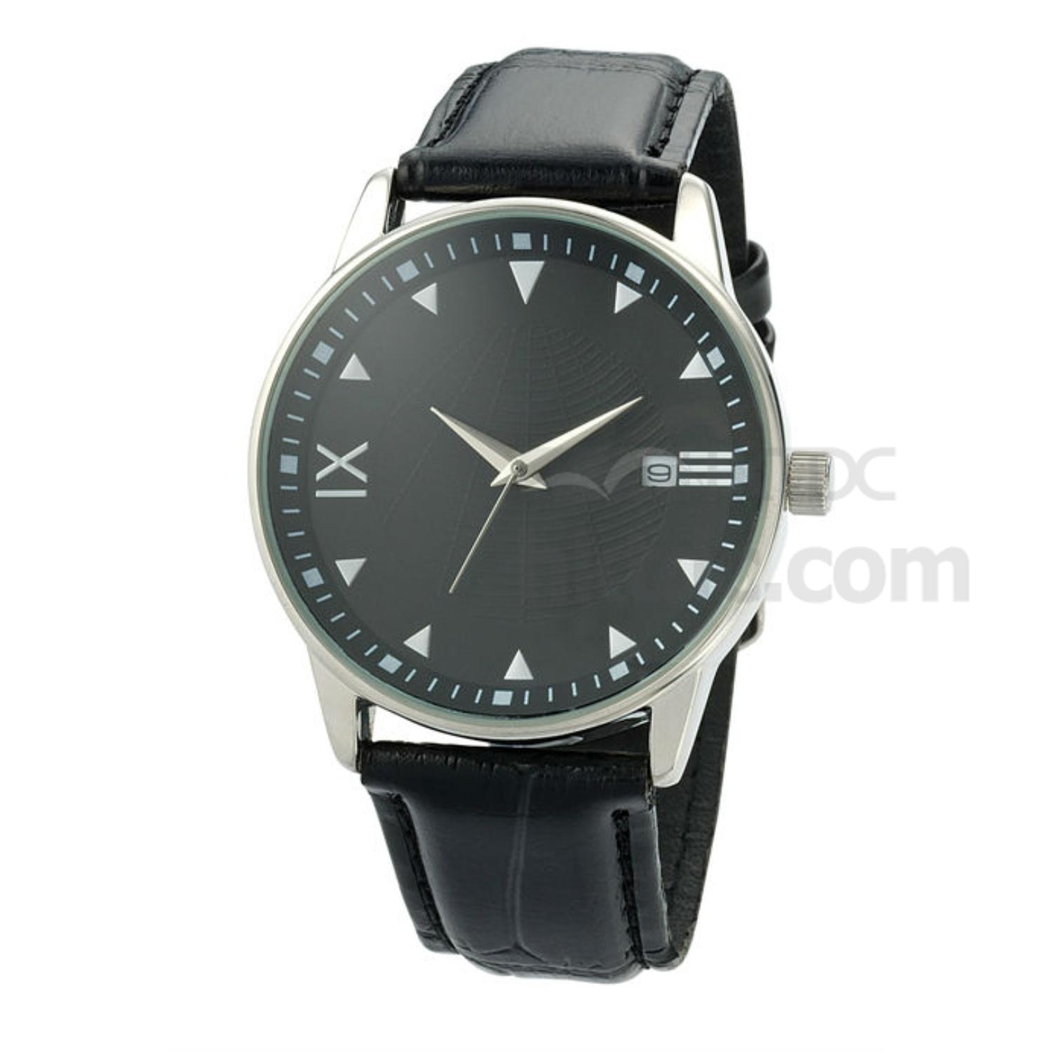 Alloy case, IPS plating, 3ATM, Japan 3 hands date movt, structural dial with up index, genuine leather strap with croco pattern