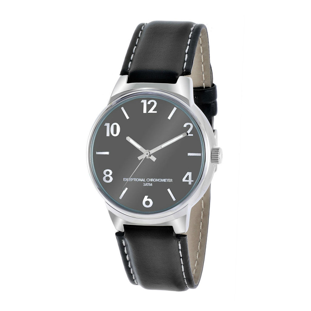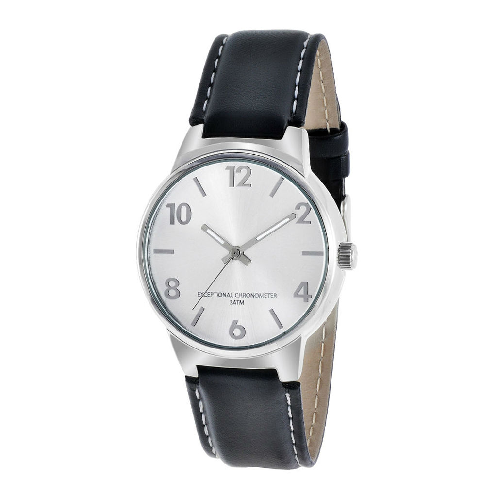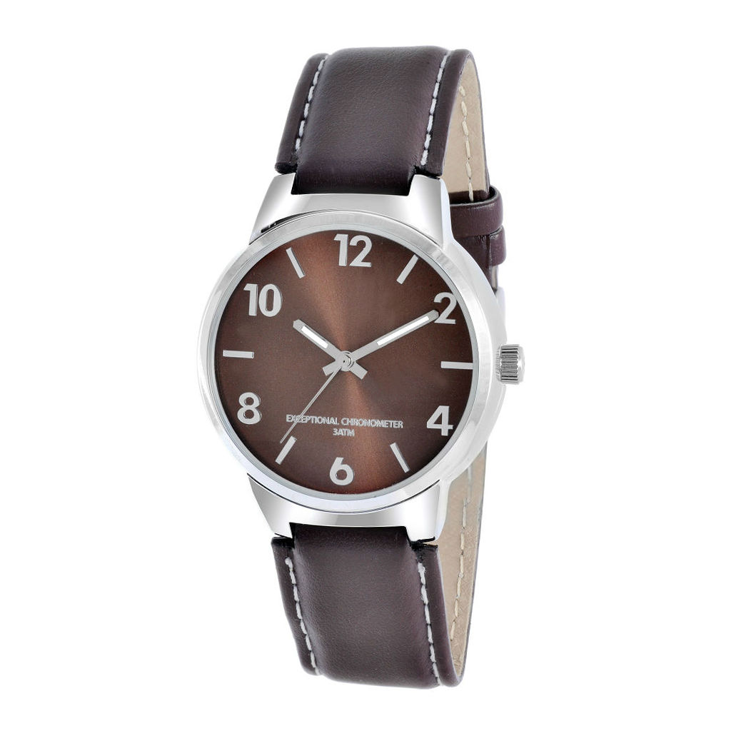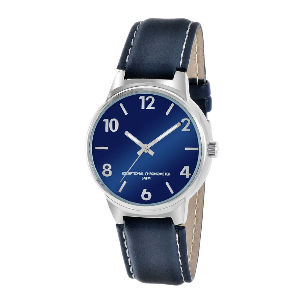 Alloy case, IPS plating, sunray dial UP index, PU leather strap with genuine leather lining, 3ATM, 3 hands japan parts movt