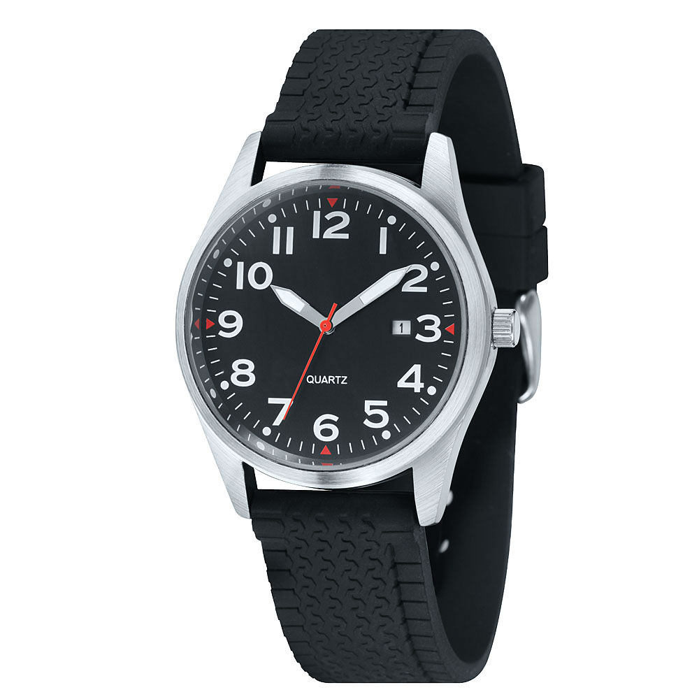 Alloy case ,IPS plating, printing dial with printing index, silicon strap , 3 ATM, 3 hands date japan movt