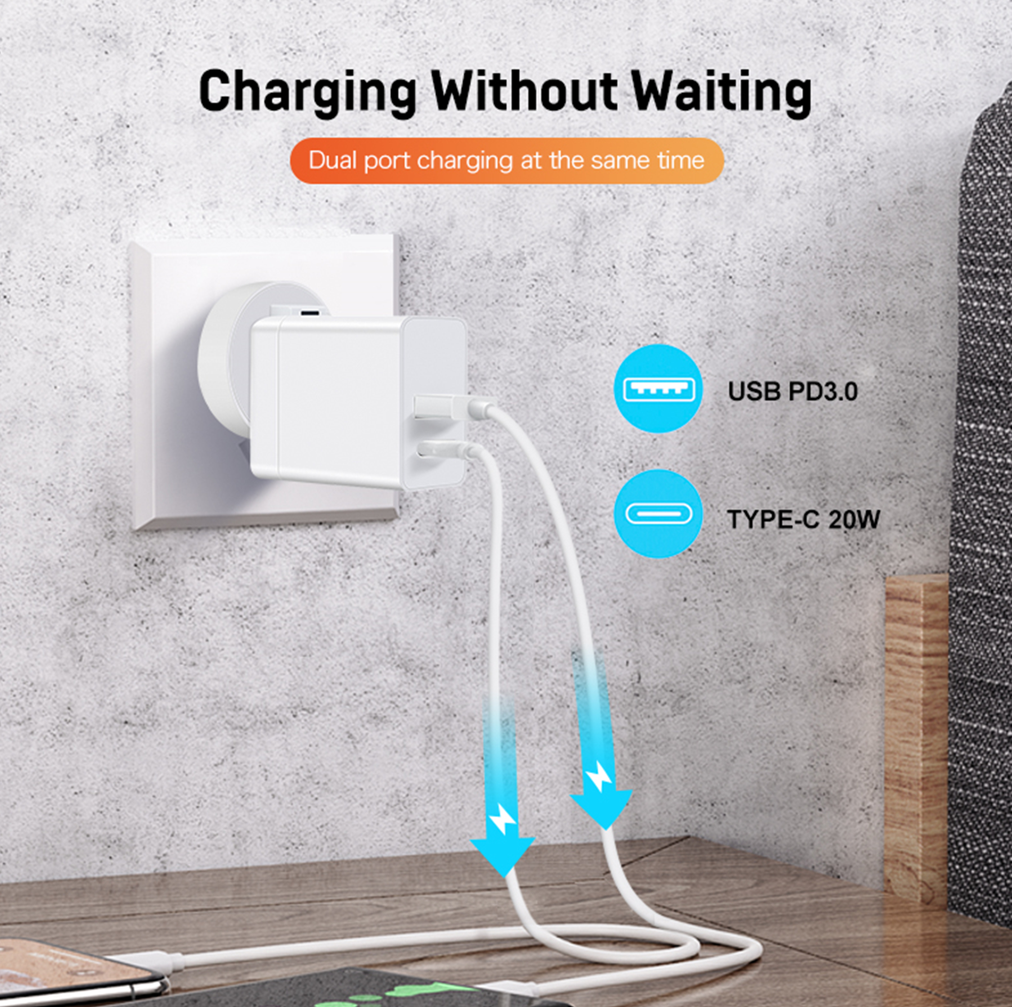 ●Output:USB A: 5V 3A/ 9V 2A /10V 2A/12V 1.5A;TYPE-C: 5V 3A/ 9V 2.22A/ 12V1.67A 3.3-5.9V 3A/ 3.3V-11V1.8A