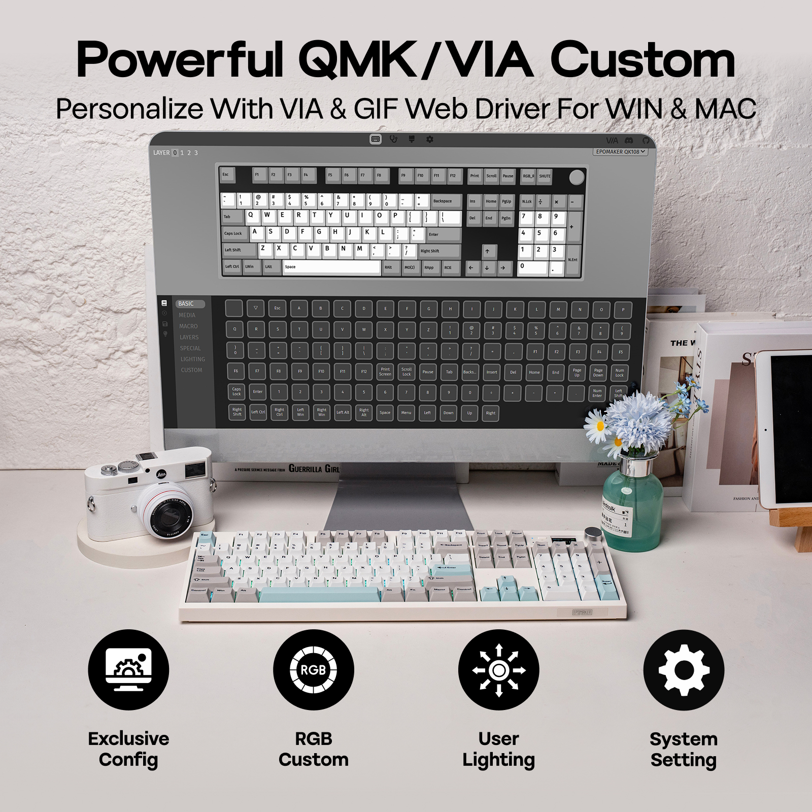 Fully compatible with VIA, the QK108 custom keyboard puts the power of personalization directly into your hands. The VIA software offers easy customization friendly to beginners and enthusiasts.