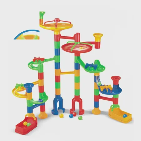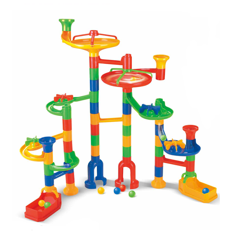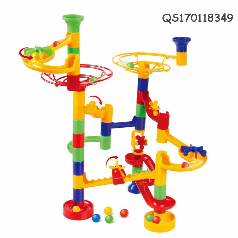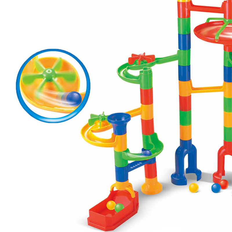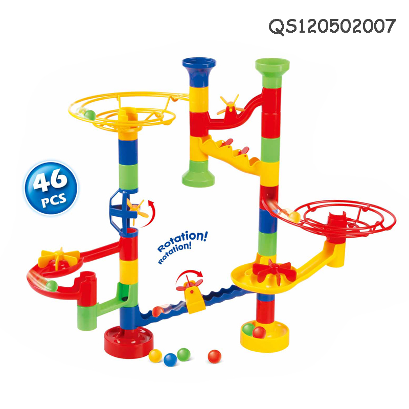 QS STEM Educational 3D Developmental Stacking Blocks Toy 56Pcs Construction Ball Track Marble Run Building Blocks Toys