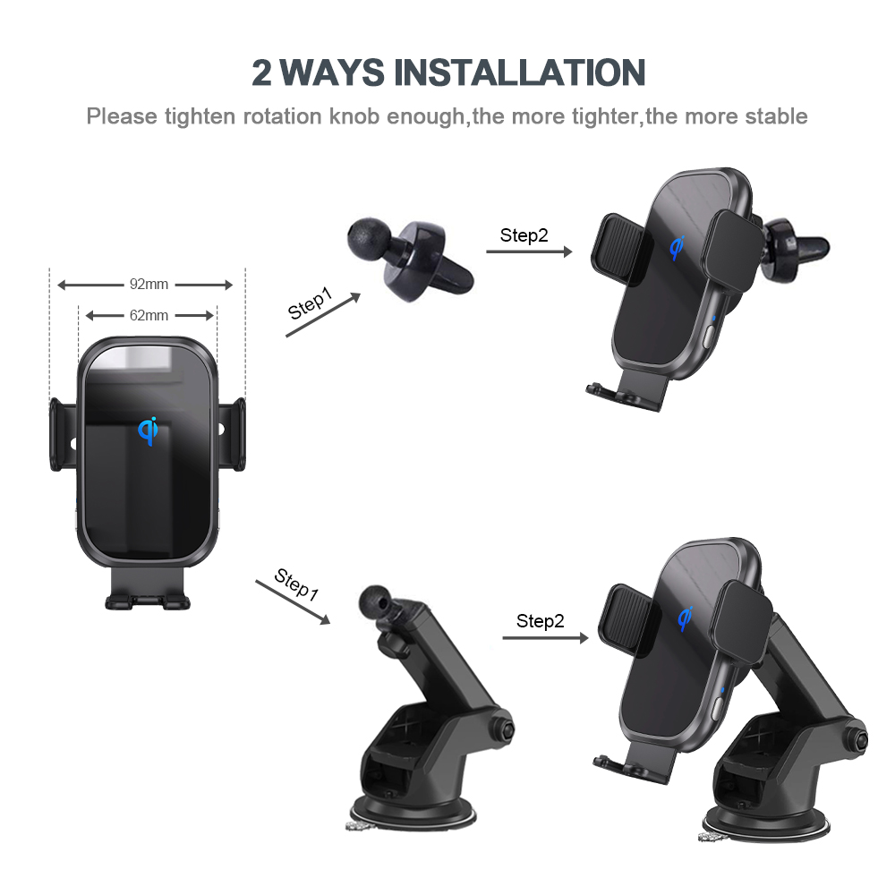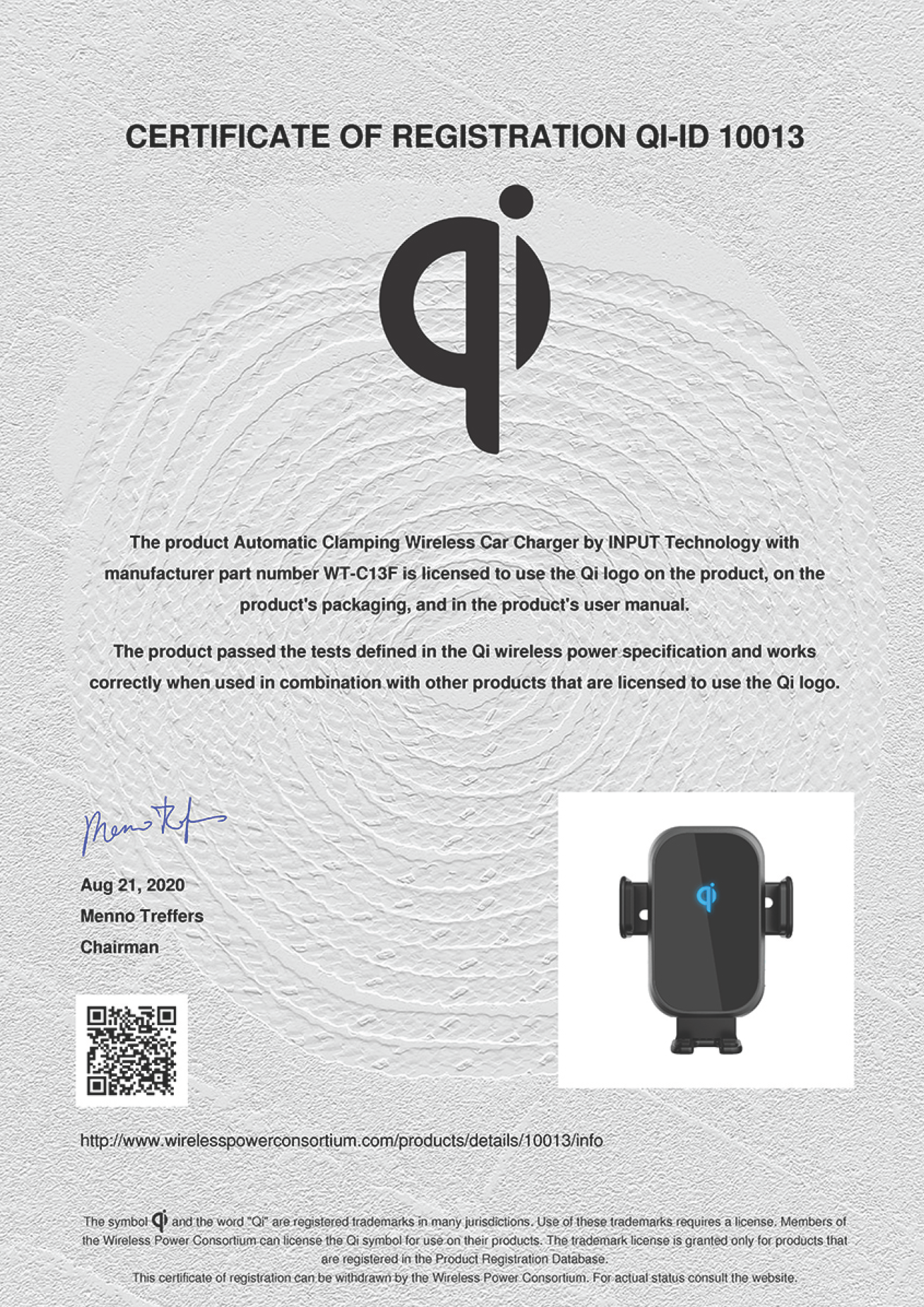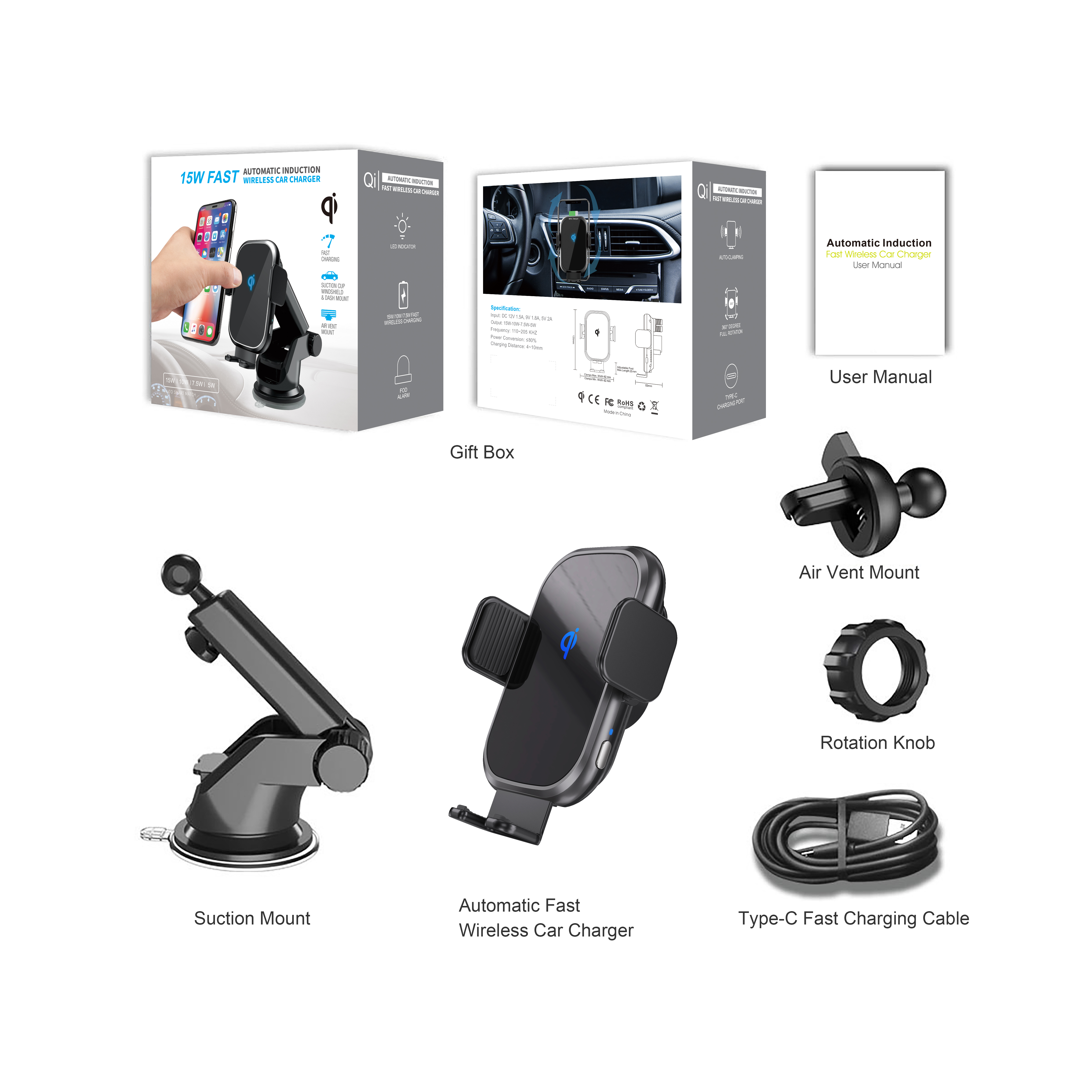WT-C13F 15W/10W/7.5W/5W Automatic Fast Wireless Car Charger