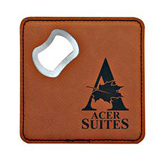 The high-quality leather coaster with a built-in bottle opener for dual function. It is finely sewn around the edge with painted finish for a sharp and classy look. Wrapped inside the leather is a #420 stainless steel bottle opener that is durable enough for daily use. We have a good selection of leather colors and textures, whether a richly textured leather or a smooth touch surface, we have the right one just to suit your needs. The leather surface is engravable which is permanent and does not wear off. It is a great choice for holiday gifts when names or initials are engraved.