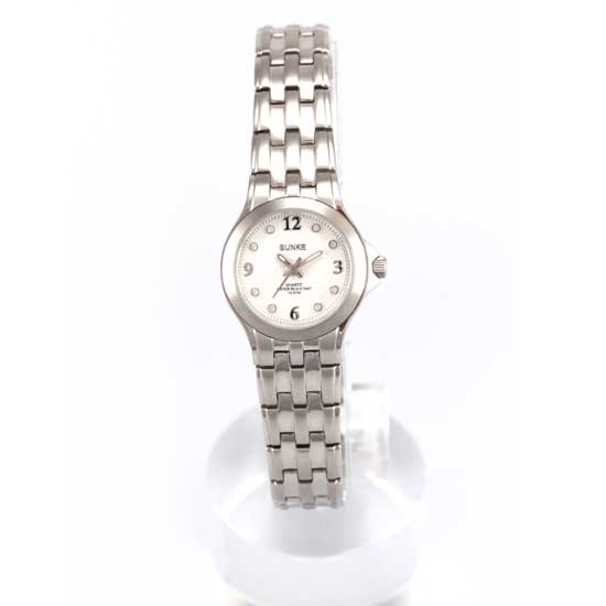 Pictured is a ladies’ watch with a sleek and stylish design. The dial is accentuated with loose sparkling stones. This elegant timepiece lines your wrist with a feminine vibe.