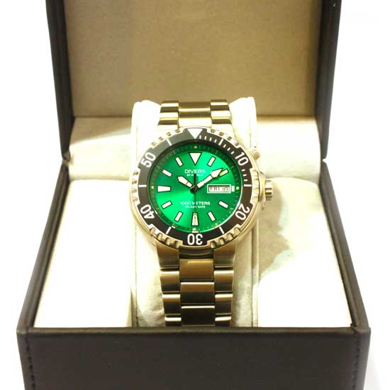 The quartz analog watch captures your attention easily with the alluring glazed dial in green. The stainless steel construction promises lasting durability and beauty. The luminous indicators and hands offer enhanced readability in the dark.