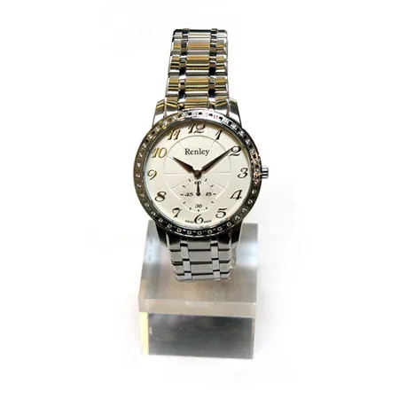 The quartz analog watch features a huge and presentable dial with embossed time markers. Its casing is embellished with dainty and sparkling accents. This piece is also completed with a waterproof design to maintain functionality.