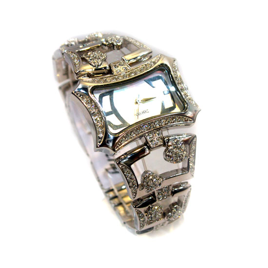 Available is a stylish watch designed for the ladies. The watch is made with brass with hollowed details on the band. The piece is accentuated with sparkling CZ stones for an enviable style.
