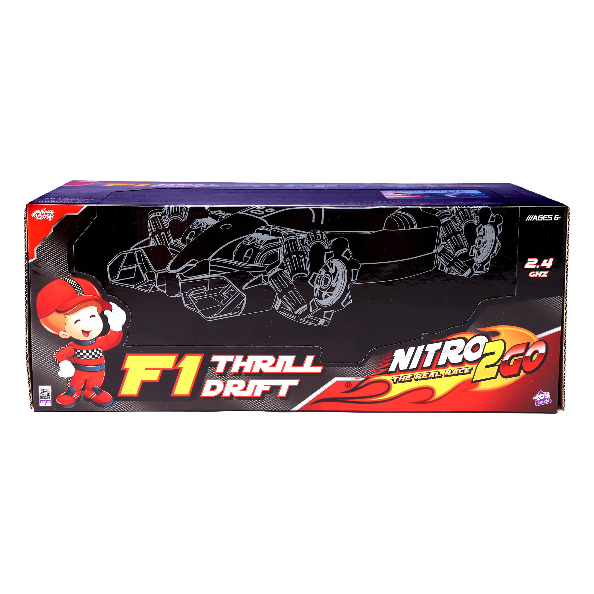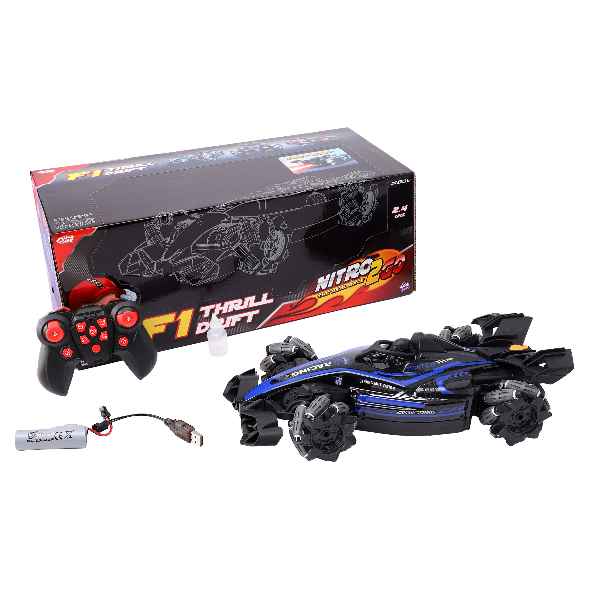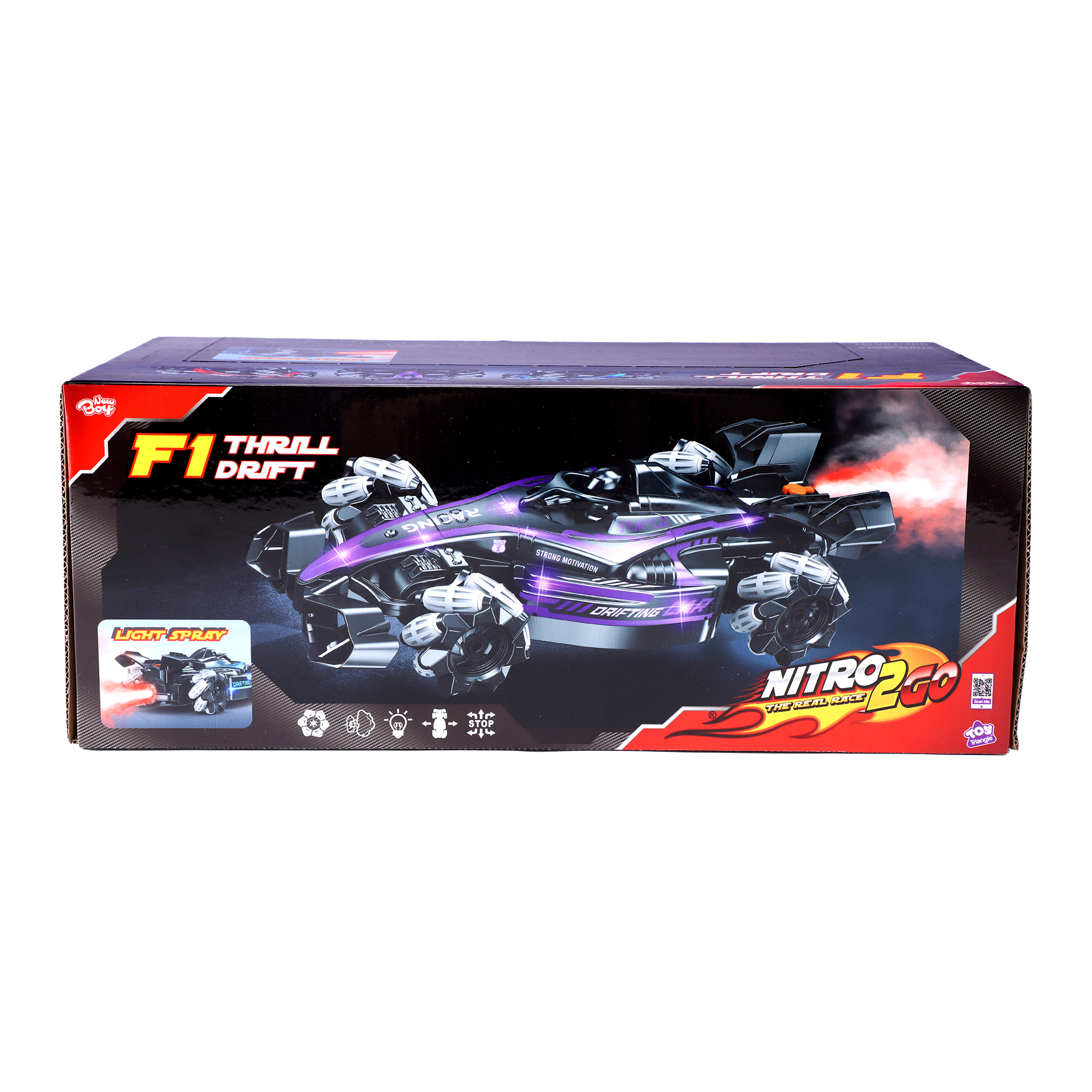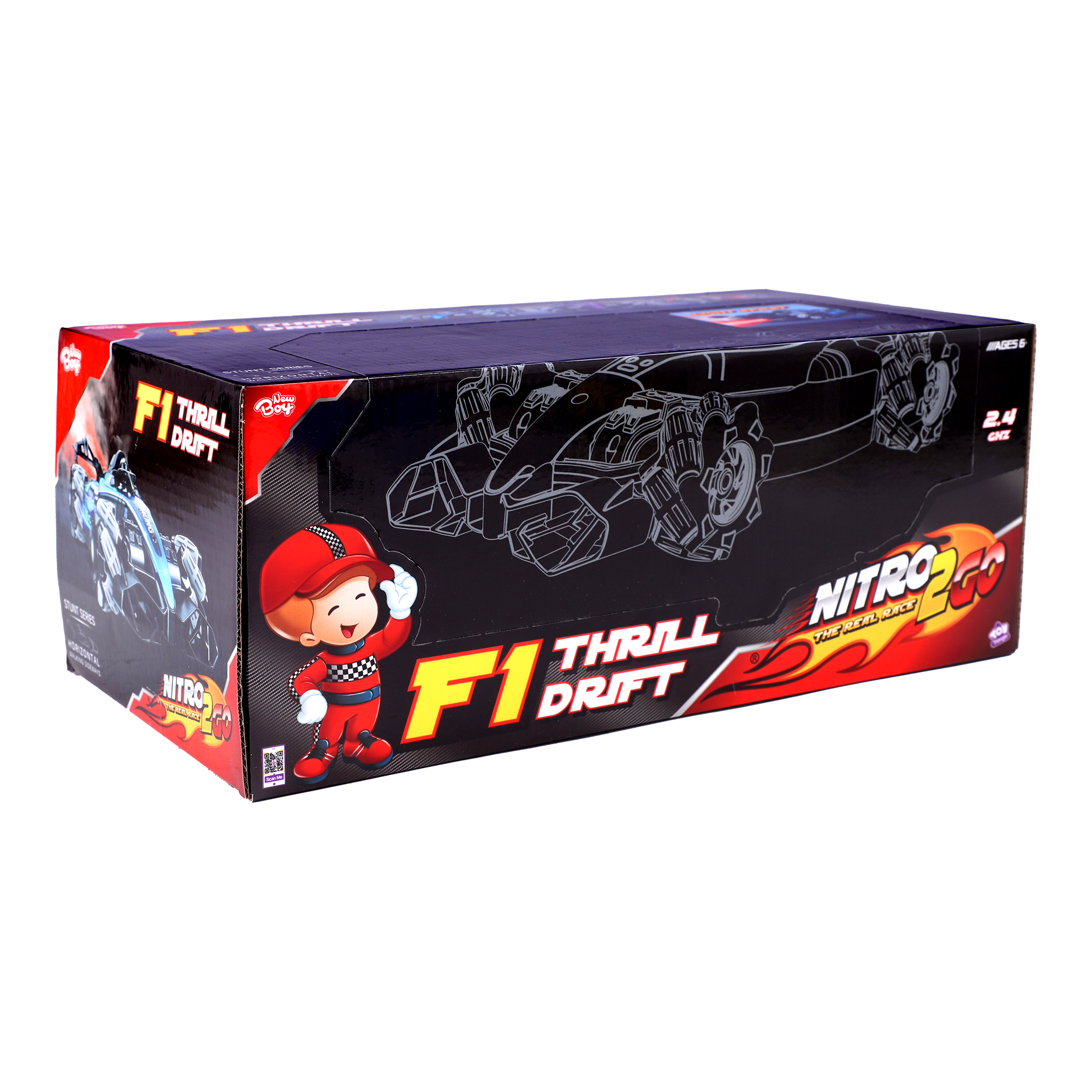 the 2.4GHz R/C F1 Thrill-Drift – the ultimate addition to the stunt series for those who love speed and excitement. Built to take on any challenge, this high-performance drift car features horizontal walking and sideways movement for thrilling stunt action. With its sleek design and light spray effects, the F1 Thrill-Drift brings an extra level of excitement and visual appeal to every drift and maneuver.