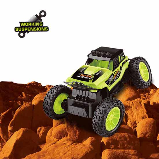 Radio control rock machine vehicle takes unexpected rough and tough challenges in the way