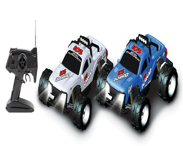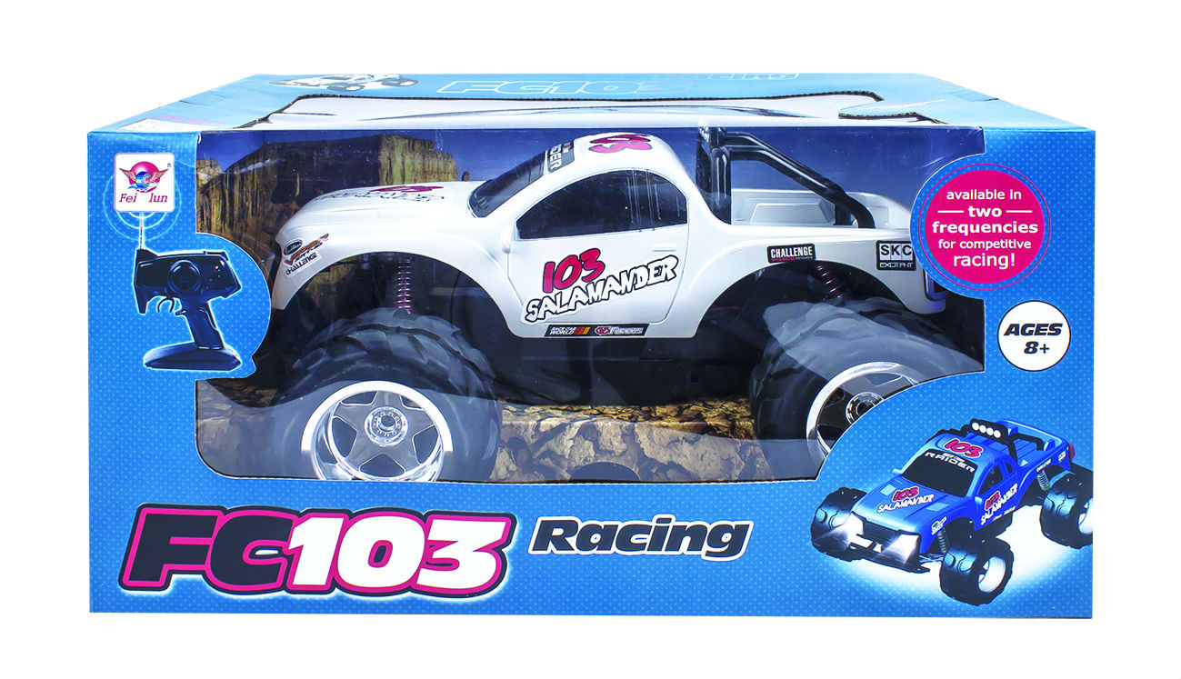 The featured truck is durably constructed and flaunts a massive size. It can move on all terrains with four large wheels. This truck comes with a pistol grip remote and is easy to control.