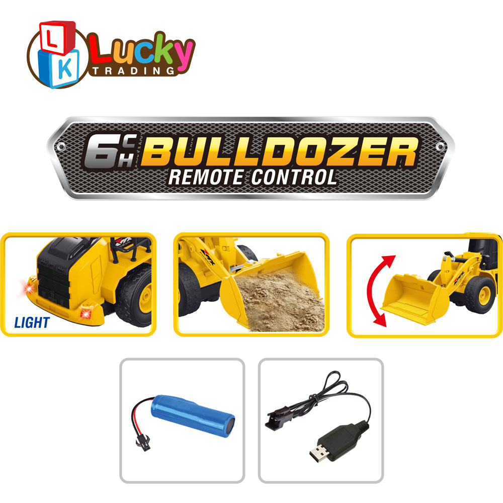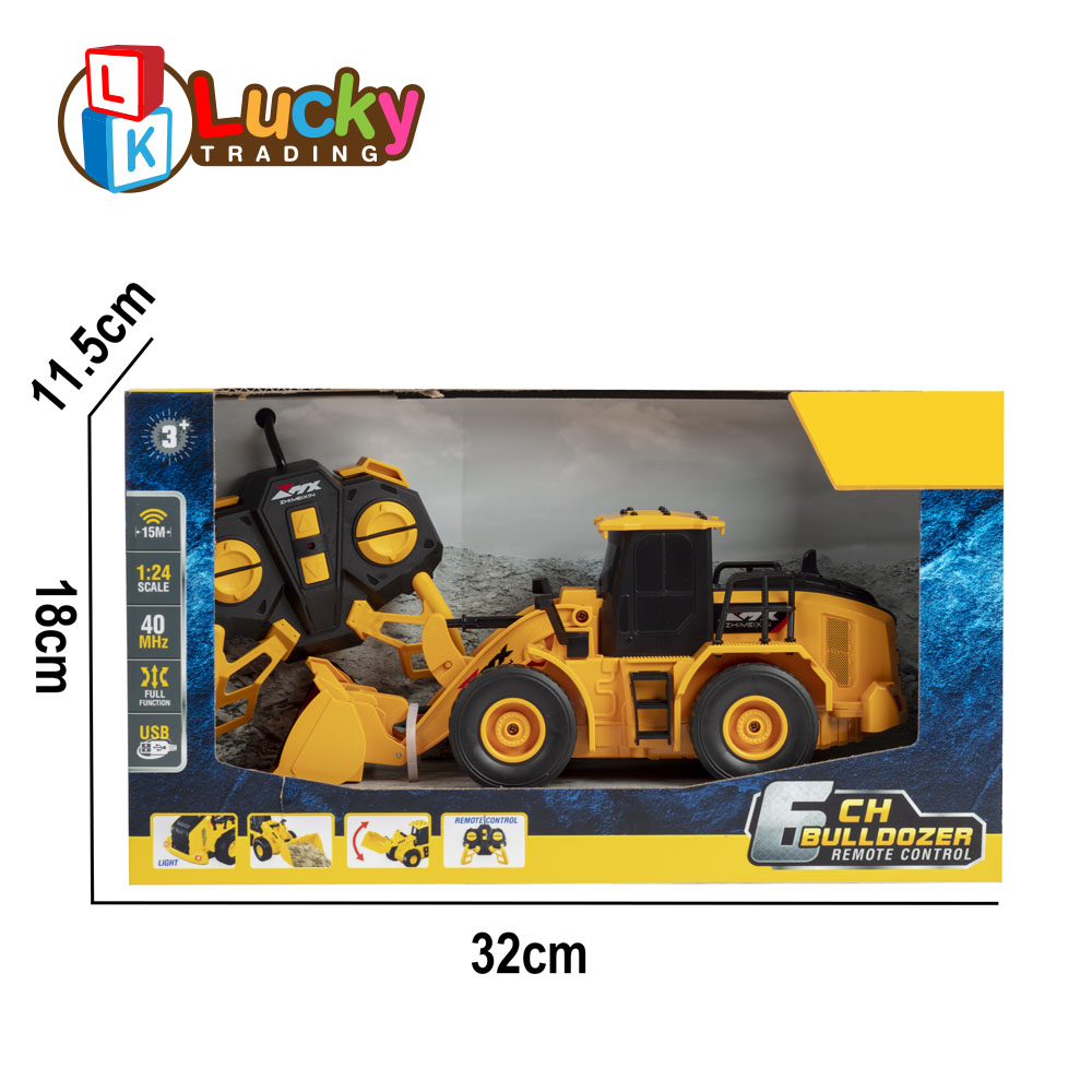 The 1:24 6CH R/C bulldozer with fully function features - moves forward, backward, left, right, arm up and down.