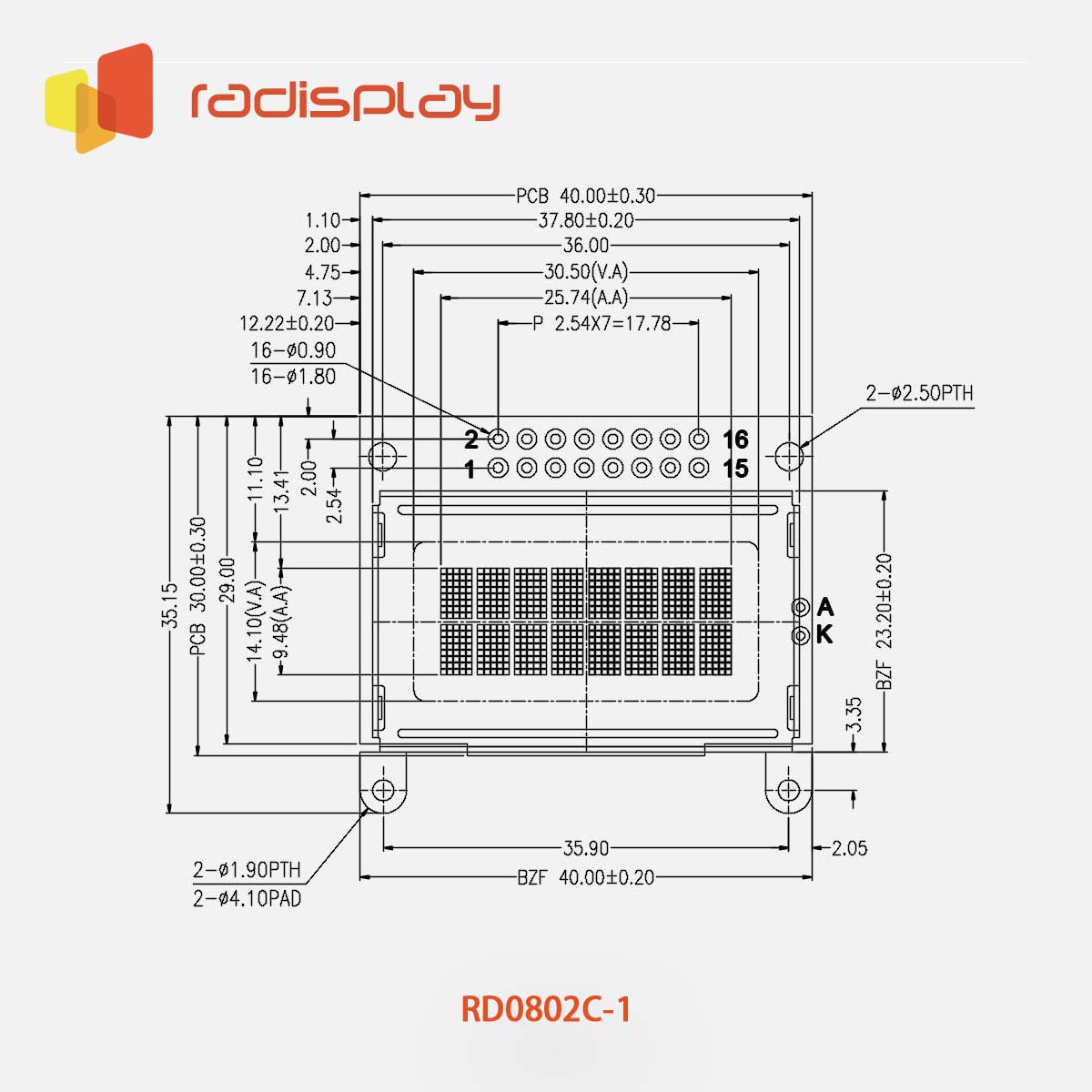 RD0802C-1 offers the smallest size among 8x2 character LCD displays.